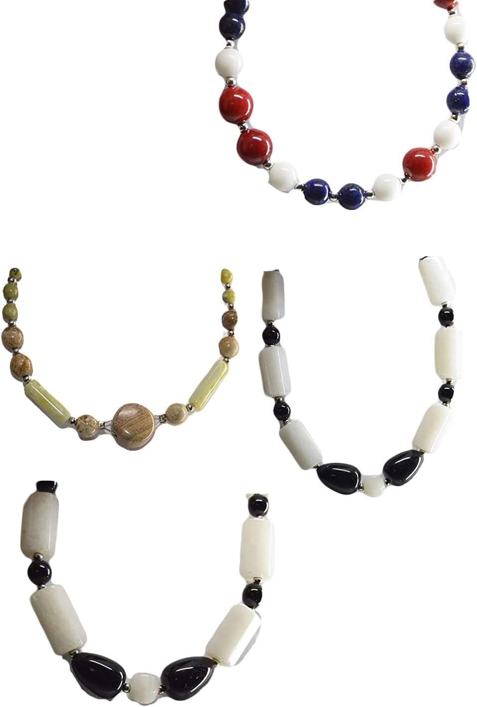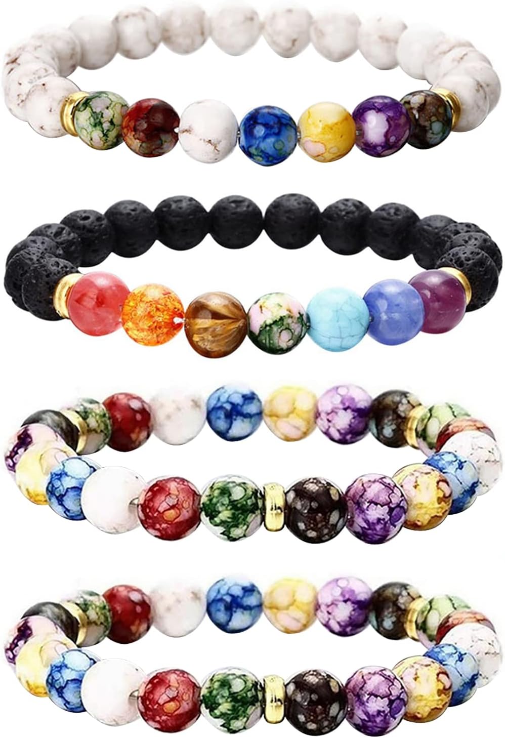 Healing Crystals Bracelet Handmade Natural Gemstones Beads Bracelet Elastic Natural Stone Yoga Beads Bracelet Bangle Gifts (4 Pcs Style A)