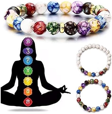 GIONO Sapphire 7 Chakra Yaga Healing Stone Jewelry Lava Beads Howlite Stretch Bracelet Buddha Beaded Handmade Bangle