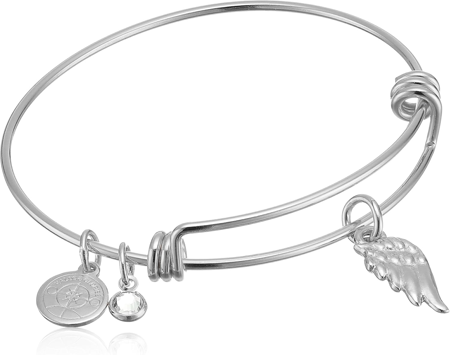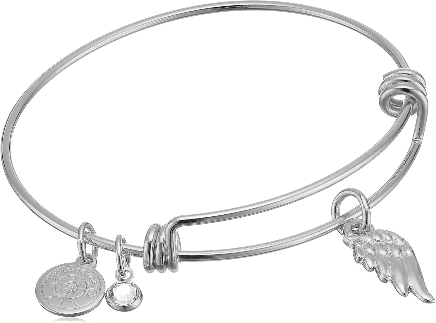 Halos & Glories, Wing Charm Shiny Silver Bangle Bracelet