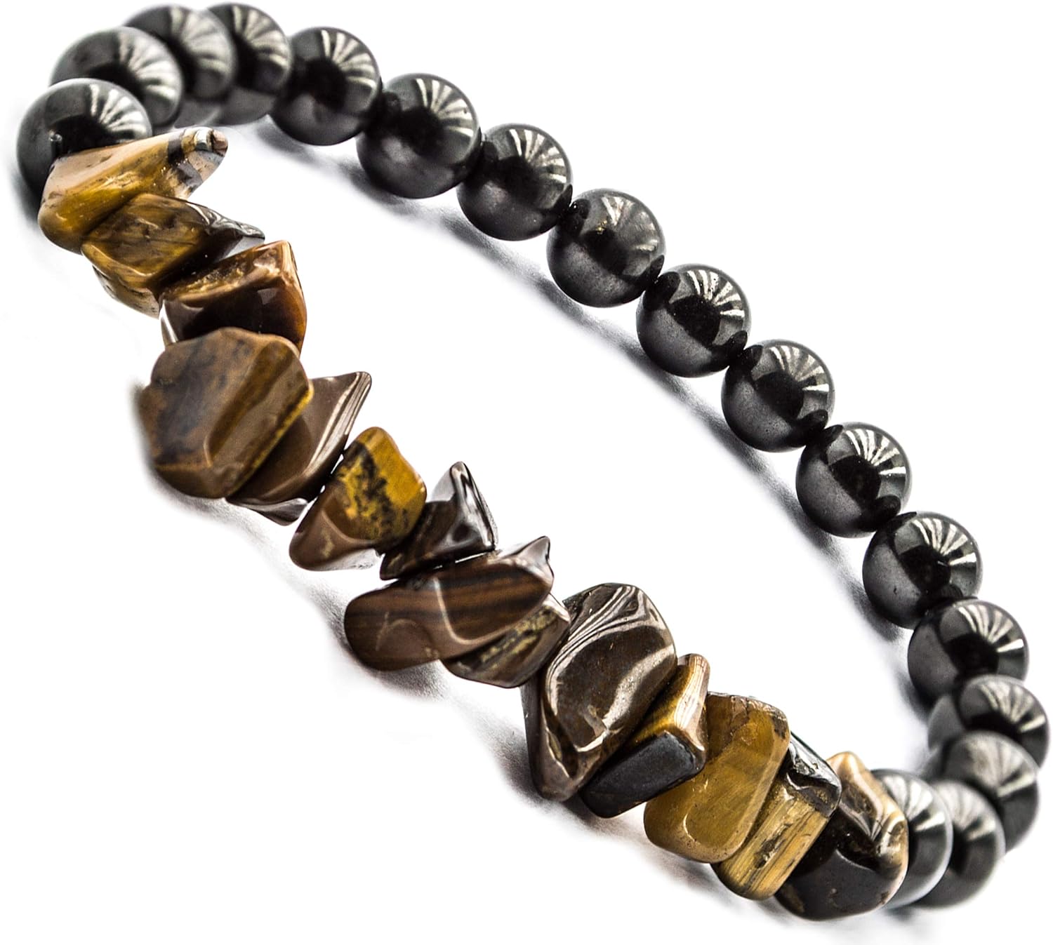 Shungite Bracelet Stretch with Natural Shungite and Tiger Eye Beads Bracelet for Women