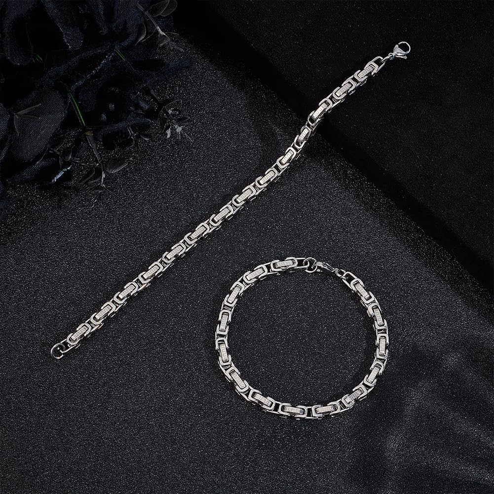 2 Piece Stainless Steel Byzantine Chain 22 cm Long Bracelets Fashionable Classic Metal Circle Bracelets with Lobster Clasp for Men and Women Jewellery Making