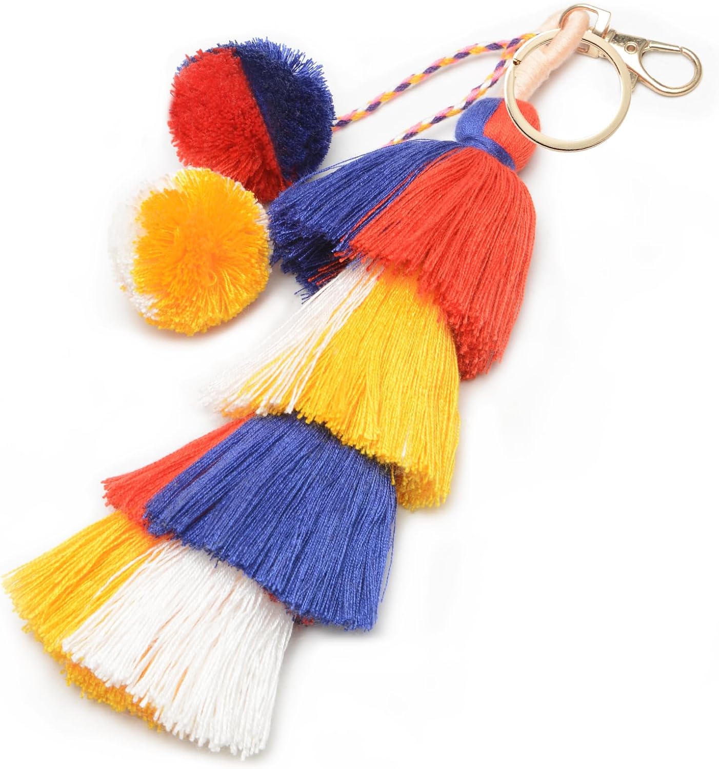Colorful Keychains Boho Pom Pom Tassel Bag Decorations Charm Wristlet Bracelet Keyring for Women