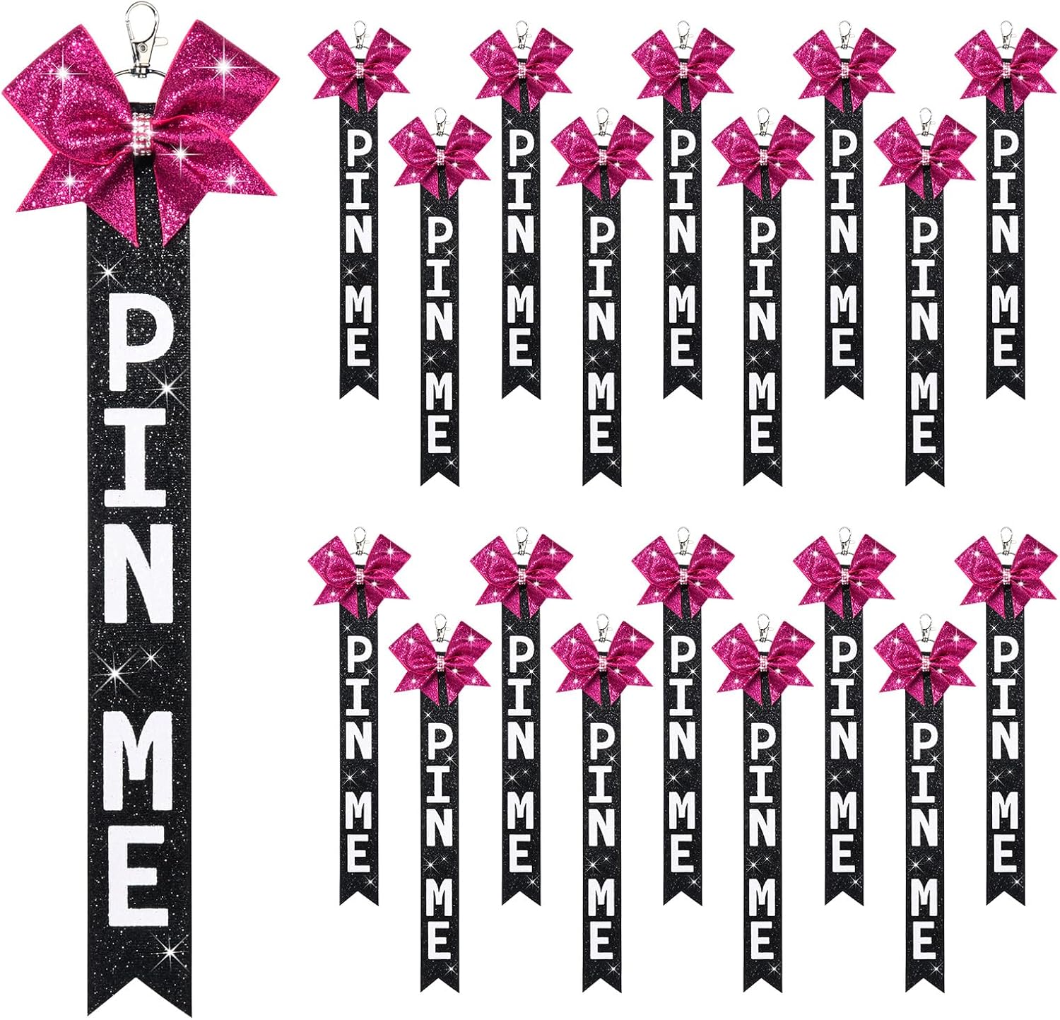 Aileam Cheer Pin Me Ribbon for Cheer Bag Bow Keychain with Rhinestones Competition Teen Girls Cheerleading