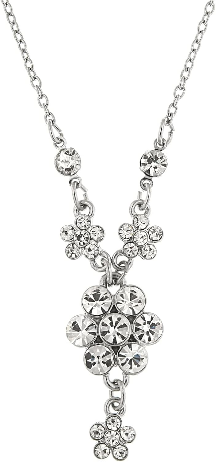 2028 Jewelry Crystal Flower Cluster Pendant Necklace For Women 16" + 3" Extender