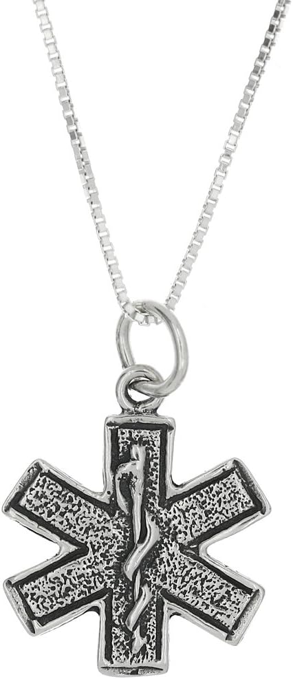 Sterling Silver One Sided Medical Paramedic EMS Star of Life Symbol Necklace