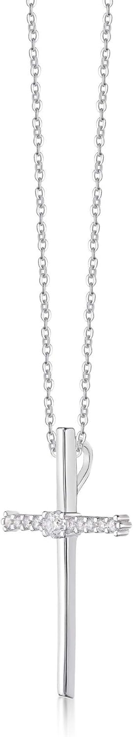 Lavari Jewelers Cubic Zirconia Cross Pendant Necklace for Women in 925 Sterling Silver 18 Inches Long Chain with Lobster Claw 20 mm