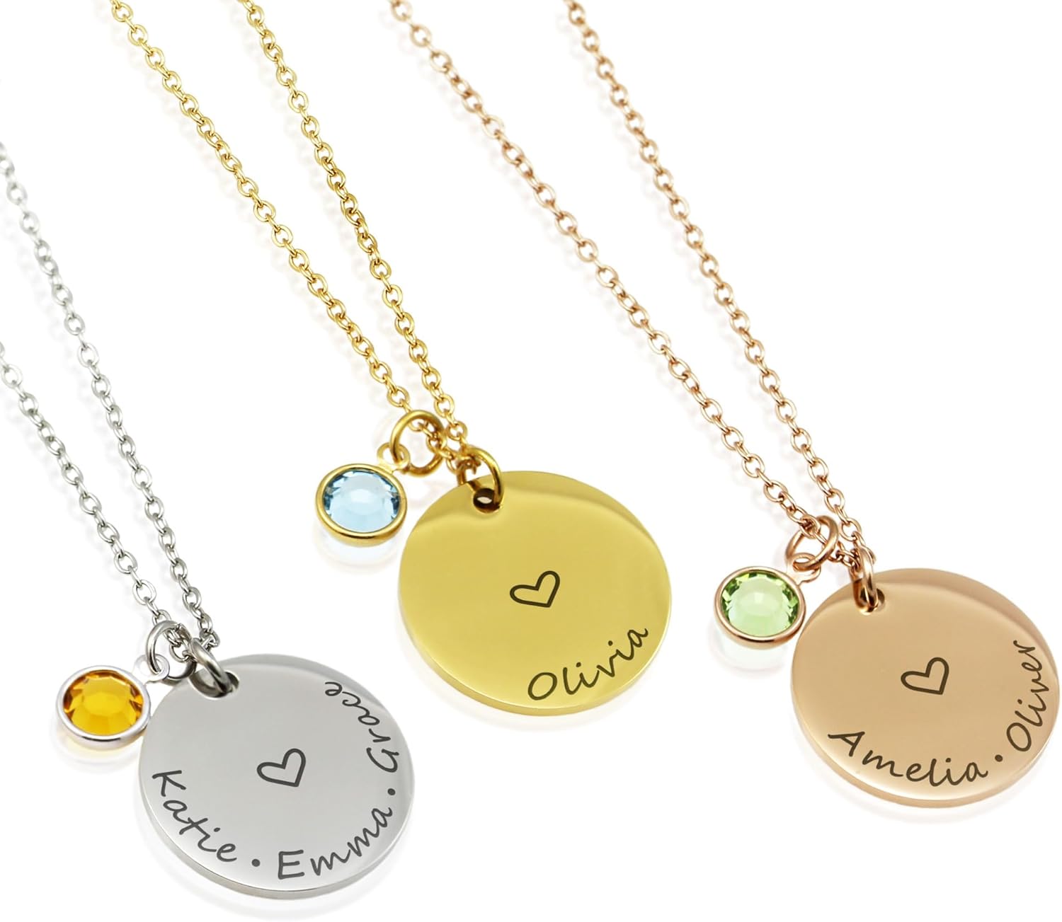 Personalized Laser Engraved Name Necklace Stainless Steel High Polished Jewelry Personalized Gift For Woman Swarovski Birthstone