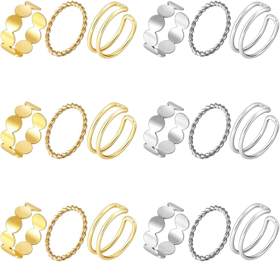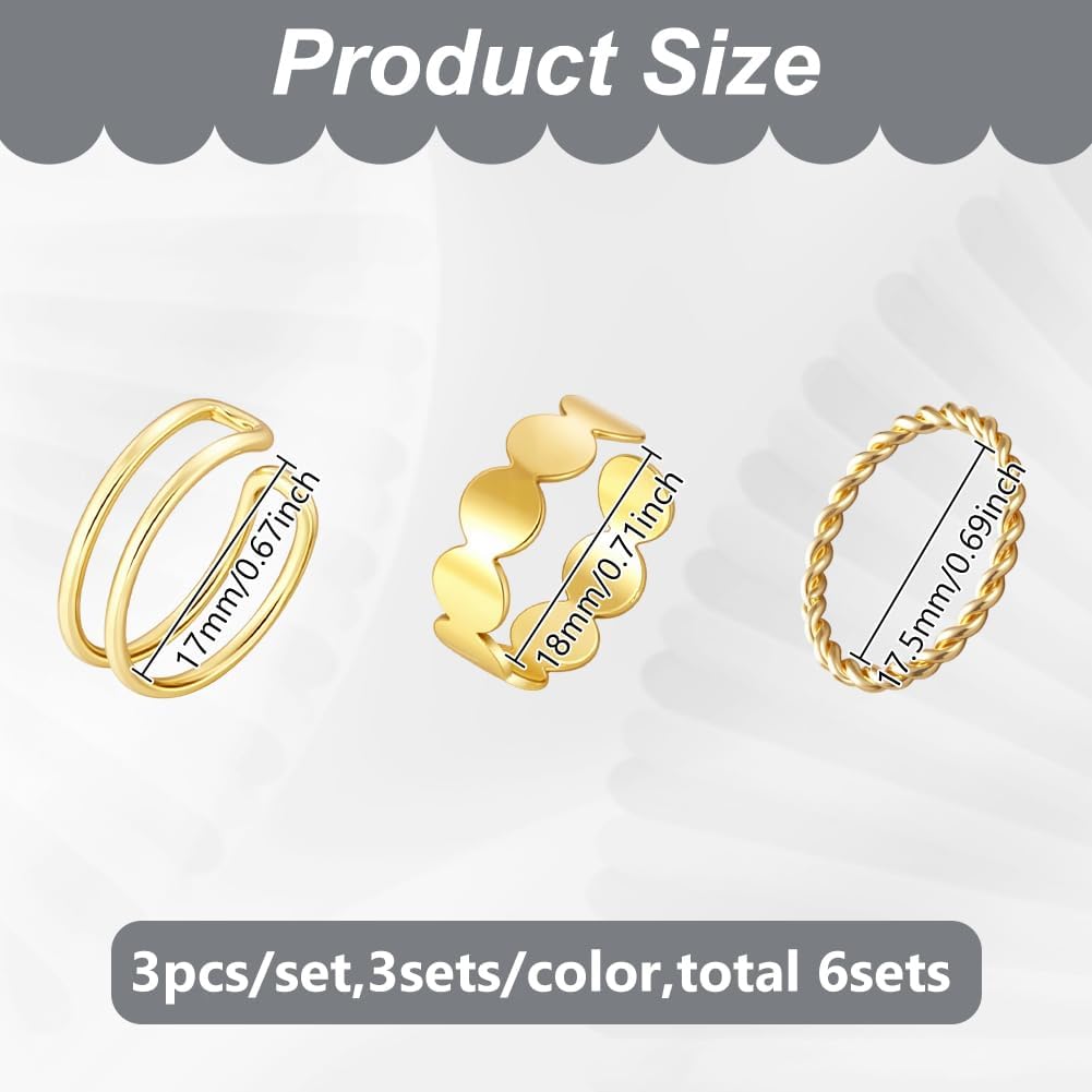 18 Pcs 6 Styles Adjustable Stacking Knuckle Rings, 16~18mm Chunky Band Ring Alloy Stackable Ring Wedding Promise Band Rings for Women Jewlery Gift