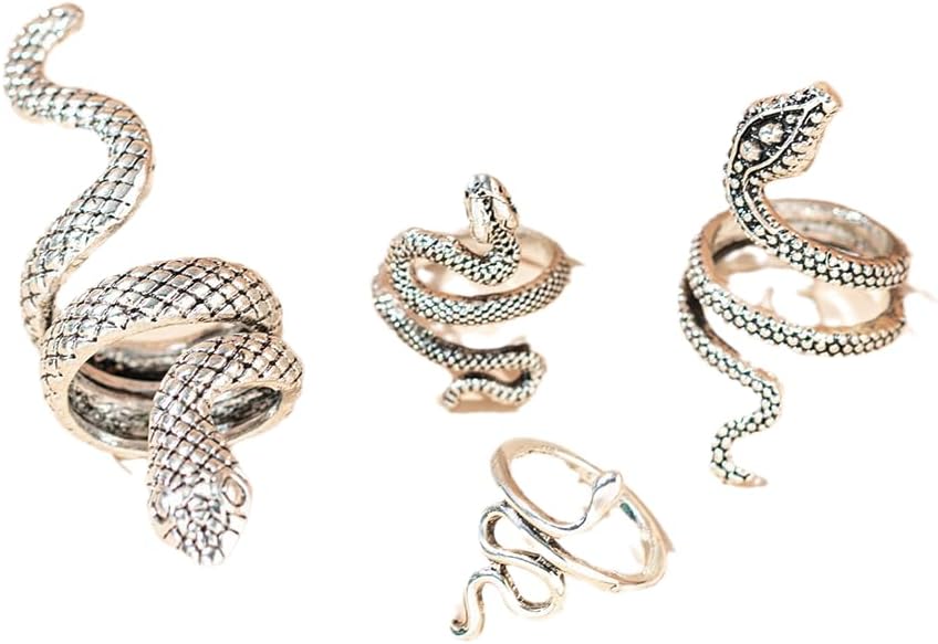 DATOA 4 Pcs Set Snake Ring Adjustable Punk Snake Ring for Women Stacking Open Rings Set Vintage Goth Silver Snake Ring Halloween Jewelry