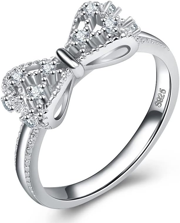 tenghong2021 Classic Bow Forever Love Knot Promise Rings Elegant Bowkont Statement Wedding Band Cubic Zirconia Bow Ring Cute Round Engagement Ring