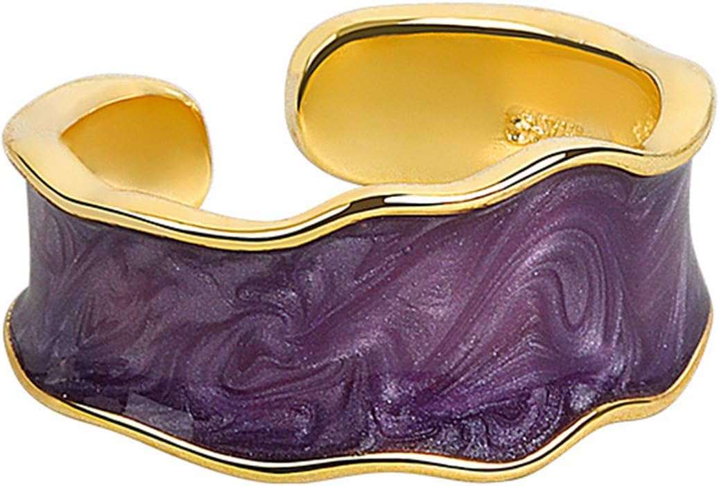 Elegant Oil Drip Enamel Wave Wide Irregular Colorful Adjustable Opening Finger Ring Joint Stackable for Women Jewelry Gifts Bohemian