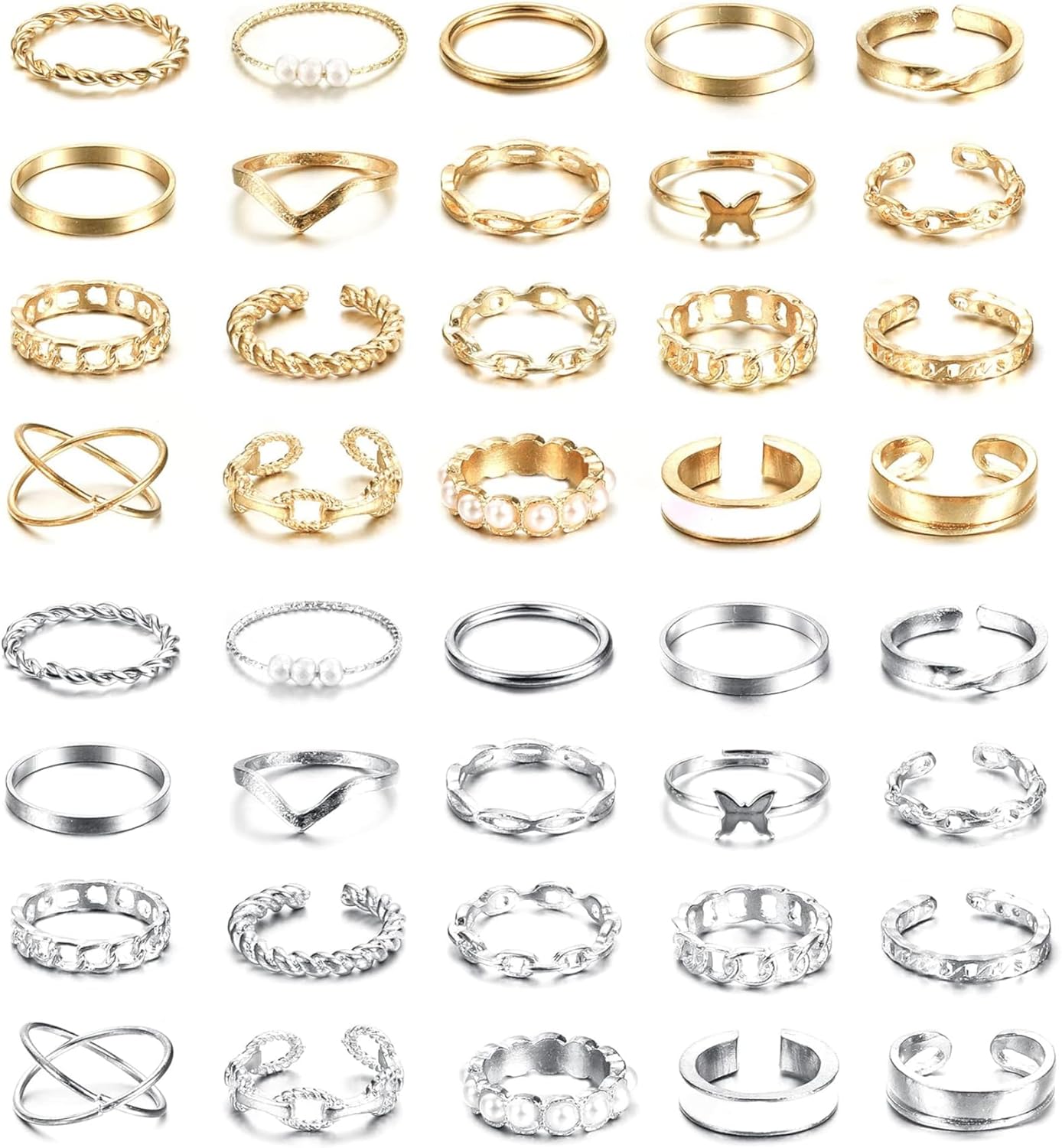 40 Pcs Vintage Gold Knuckle Rings Set, Boho Butterfly Snake Stackable Finger Rings for Women Silver Midi Rings Pack