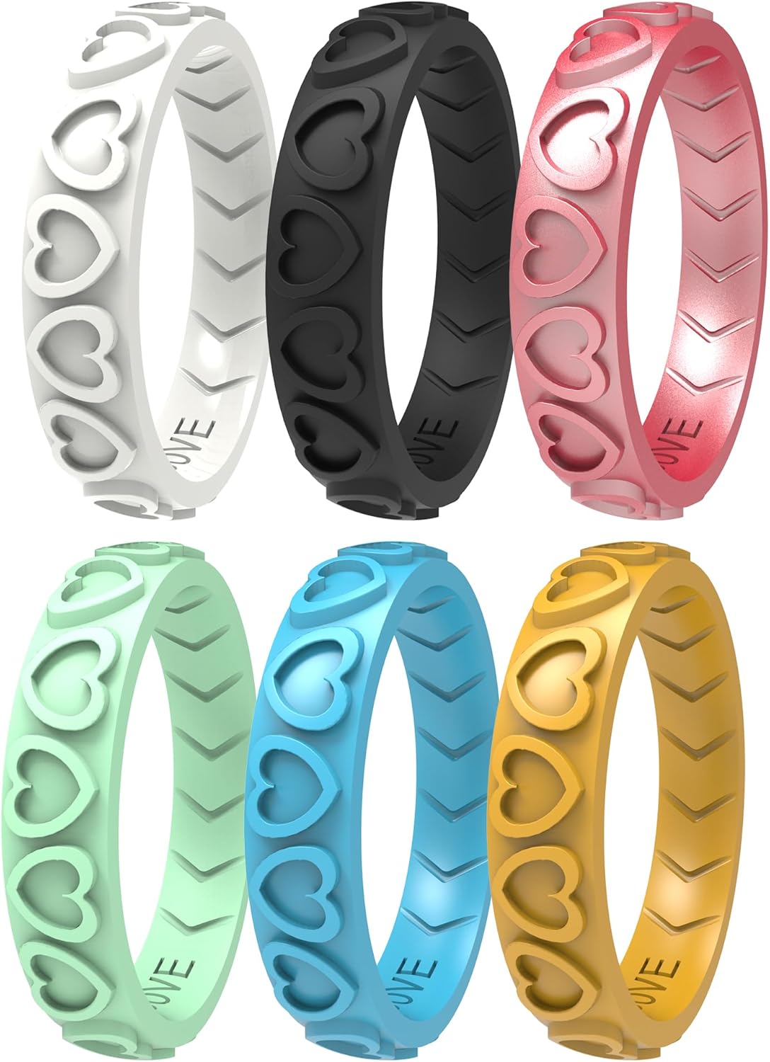 10/6/4 Packs Silicone Ring Women, Stackable Braided Rings for Women, Breathable Inner Arc Rubber Rings Women, Unique Design Silicone Wedding Bands Women-Love Texture Collection