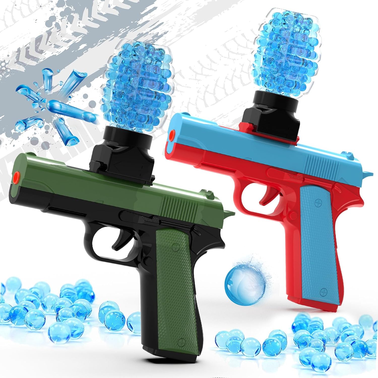 2 Pack Gel Ball Blaster Guns, Small Manual Splat Orby Gun, Gel Splatter Blaster for Adults, Outdoor Activities Shooting Games for Backyard, Garden& Lawn, Ages 14 & Up (Blue + Green)