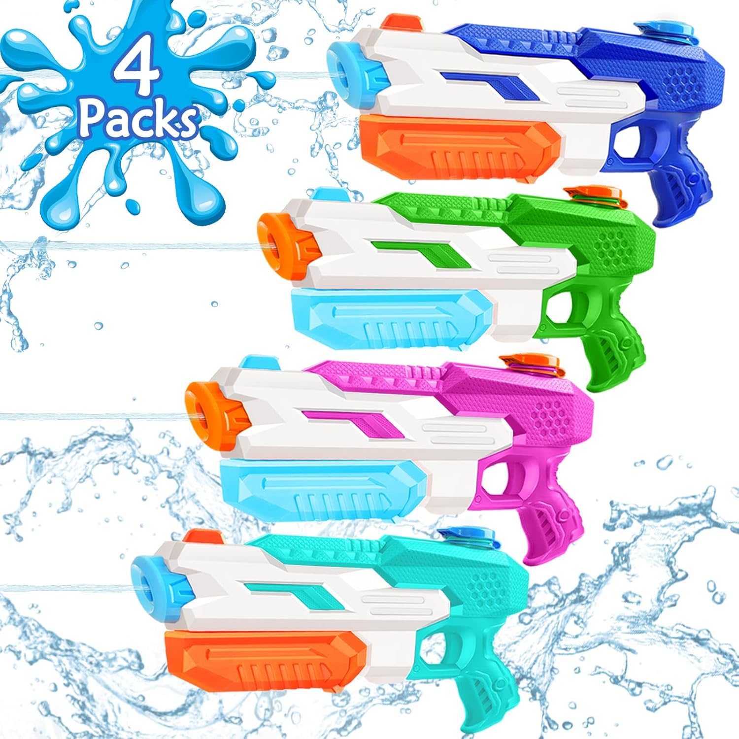4-Pack Water Blaster Soaker Guns Set,15'' Water Guns with Plastic Handle Outdoor Swimming Pool Beach Summer Fun Party Games