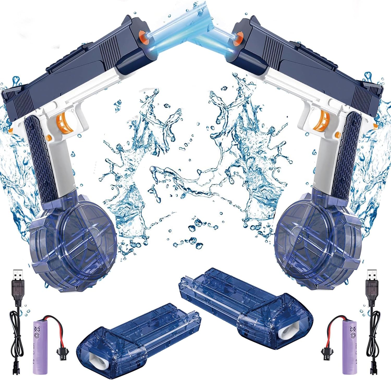 2Pcs Electric Water Guns Battery Powered Water Gun Auto Water Gun Rechargeable Automatic Spray Gun Toys Capacity Range Up to 32 FT Range for Adults & Kids - Blue