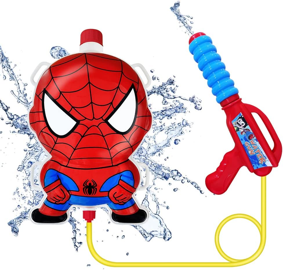 Backpack Water Gun for Kids, Superhero Squirt Gun, 1.3L Cartoon Summer Outdoor Toys with Adjustable Straps for Swimming Pool Backyard Beach Water Fight Game (Red)