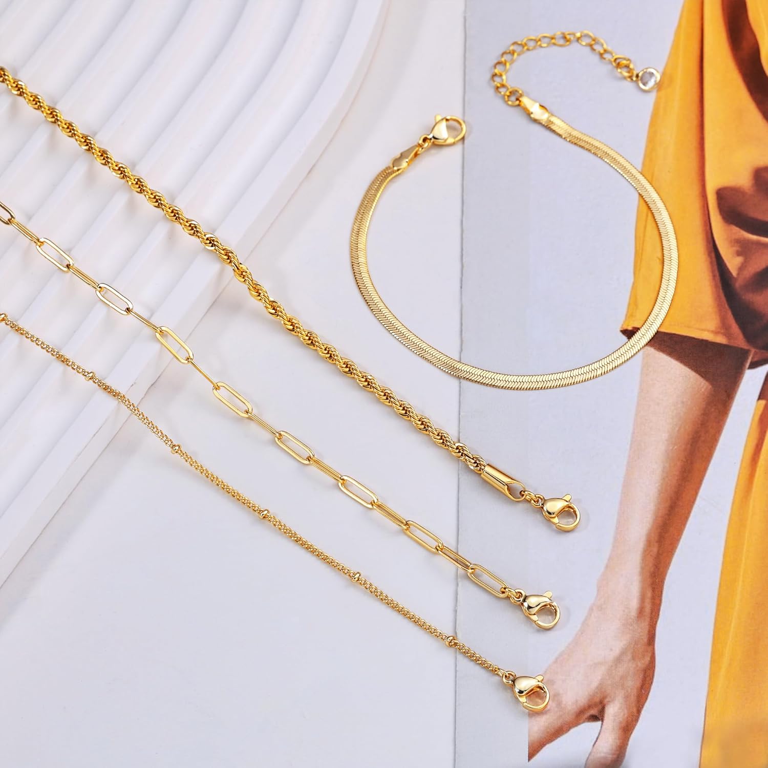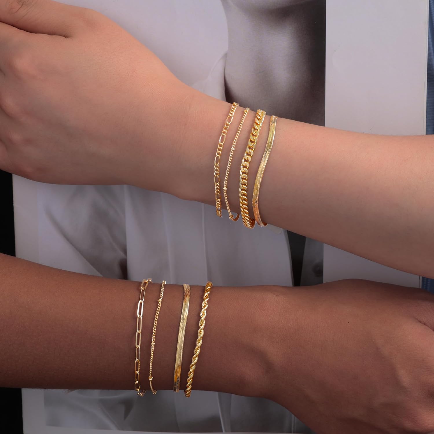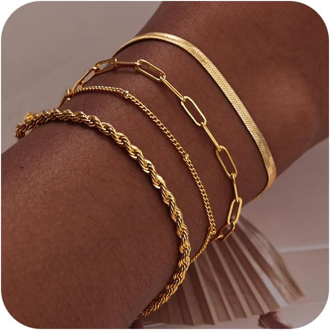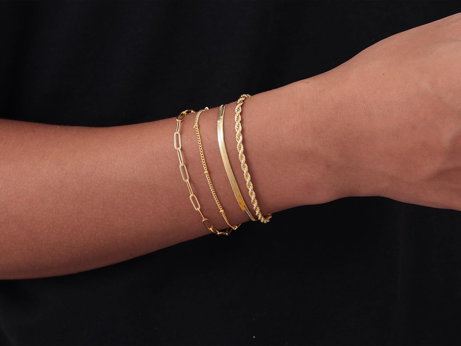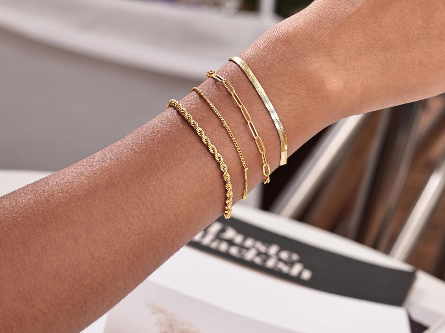 Comment on "14K Gold Plated Bracelets for Women, Gold Plated Stackable Waterproof Jewelry Set Trendy Dainty Cute Beaded Cuban Paperclip Snake Chain Herringbone Bracelet Pack(4PCS / Style A)"