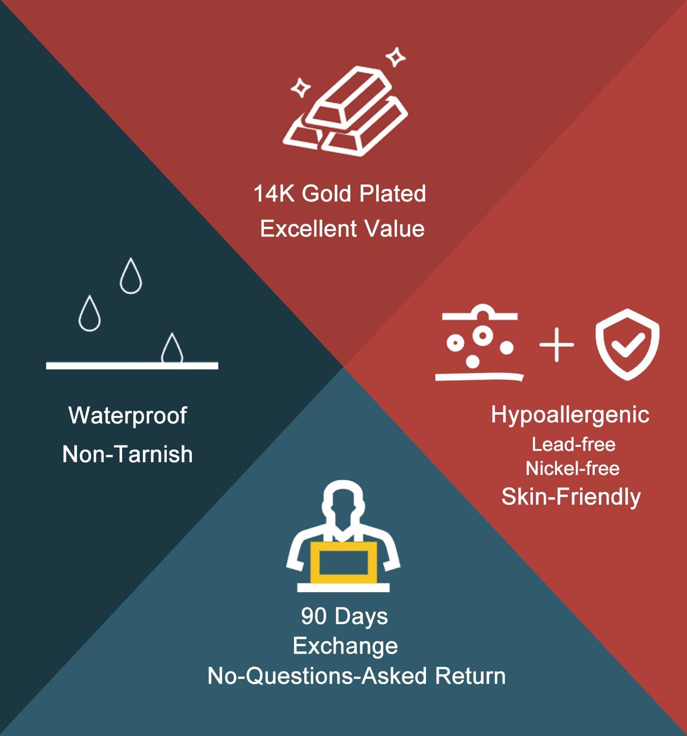 【Material】High-Quality 14K Gold Plated. Lead-free, nickel-free. It's very Skin-Friendly and suitable for daily wear
