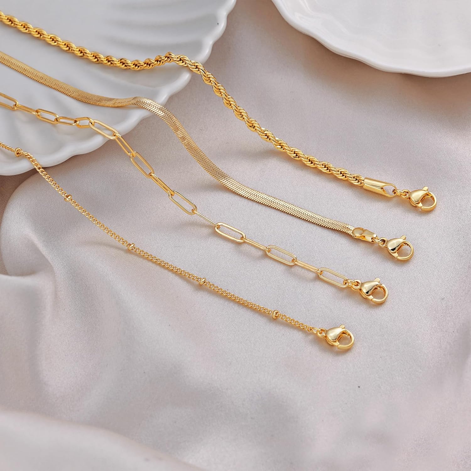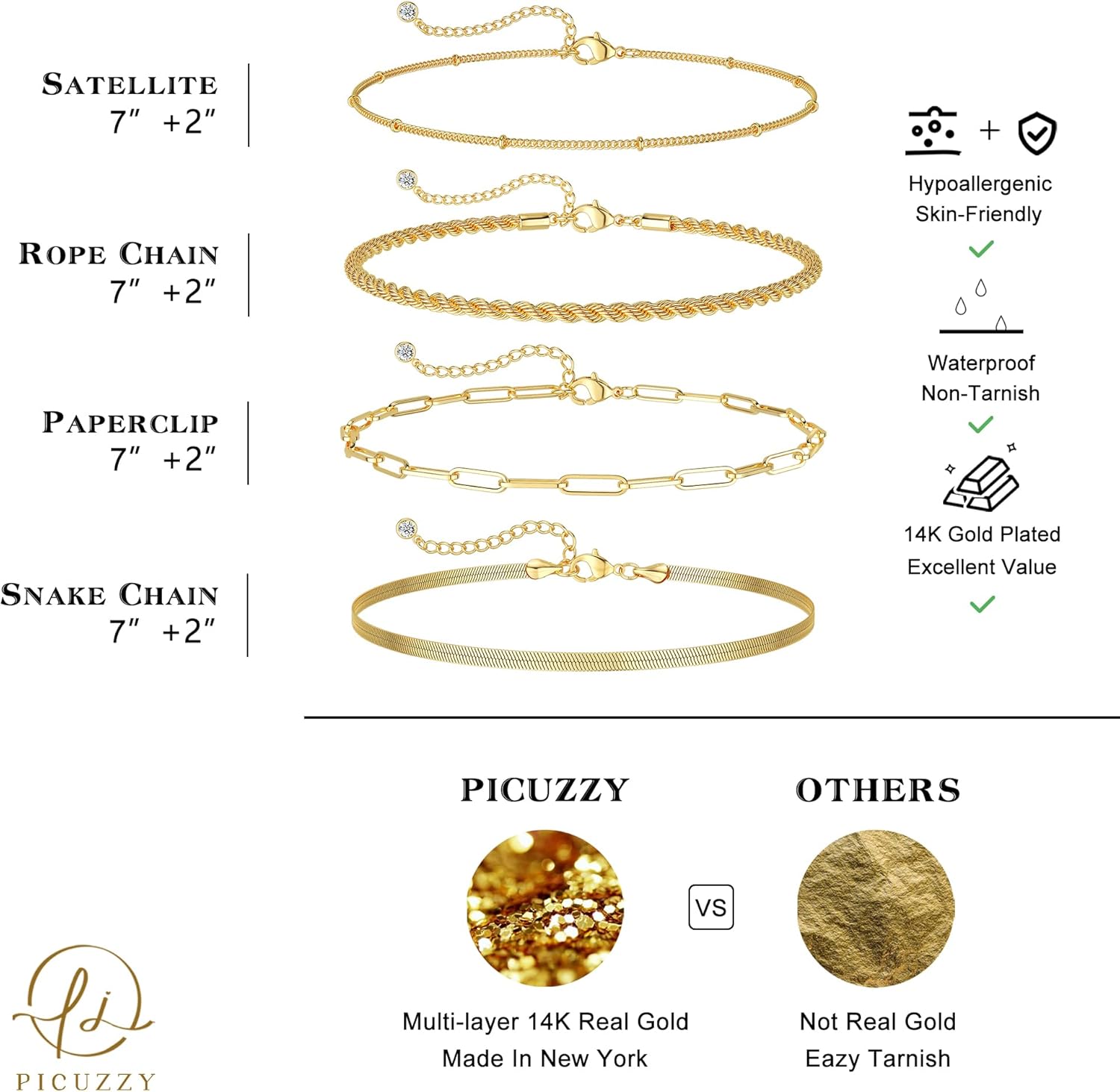 【Length】4PCS 14K Gold Plated Bracelets's Each Length: 7"+2" adjustable extender. Ensure you can wear fit and comfort