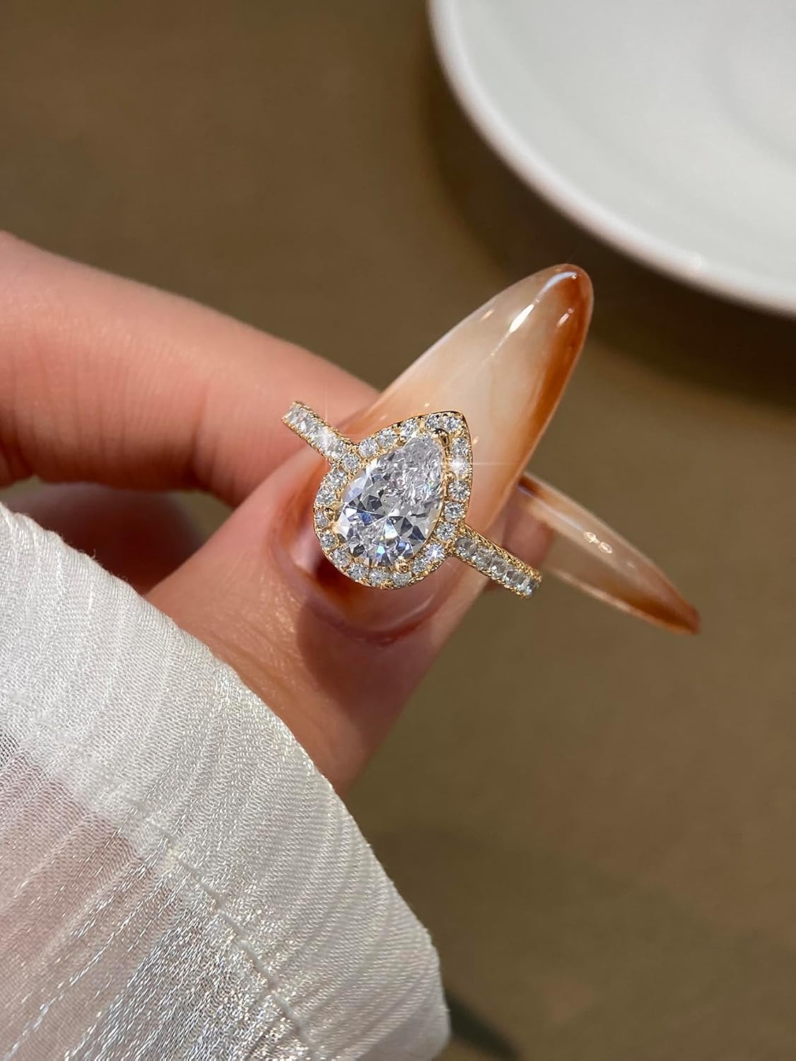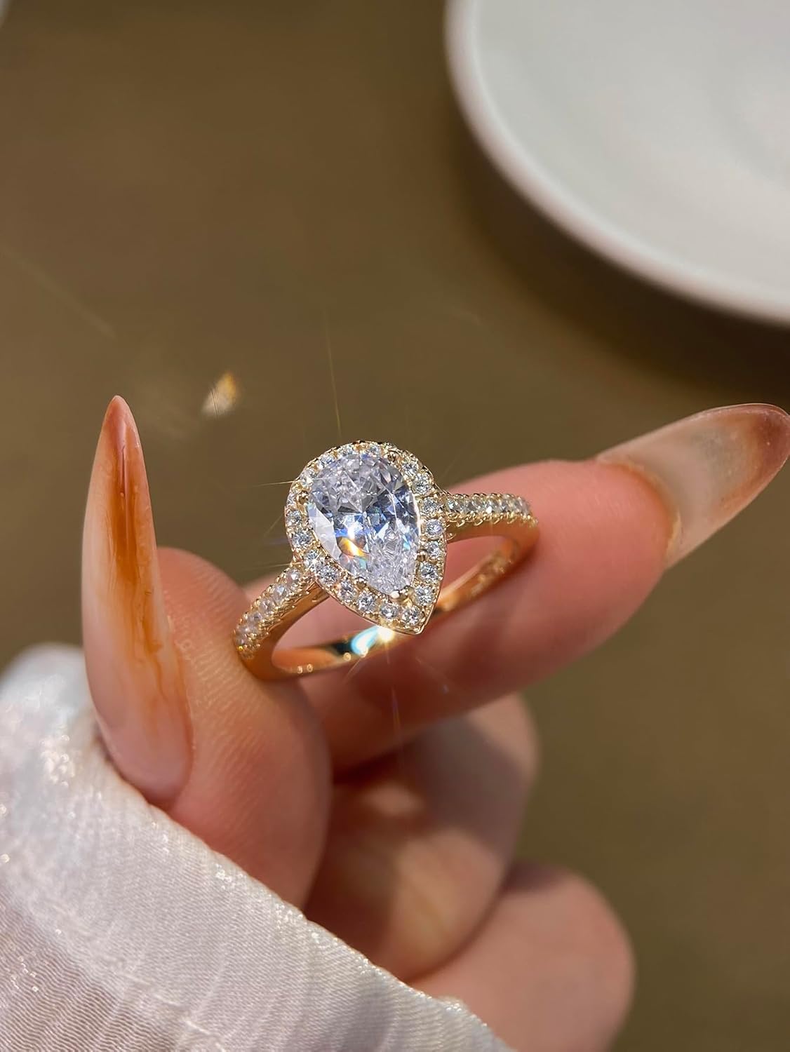 1pc Water Drop Surrounding Zircon Rings For Women Prom Wedding Anniversary Copper Ring Birthday Gift Fine Jewelry(Gold,5)