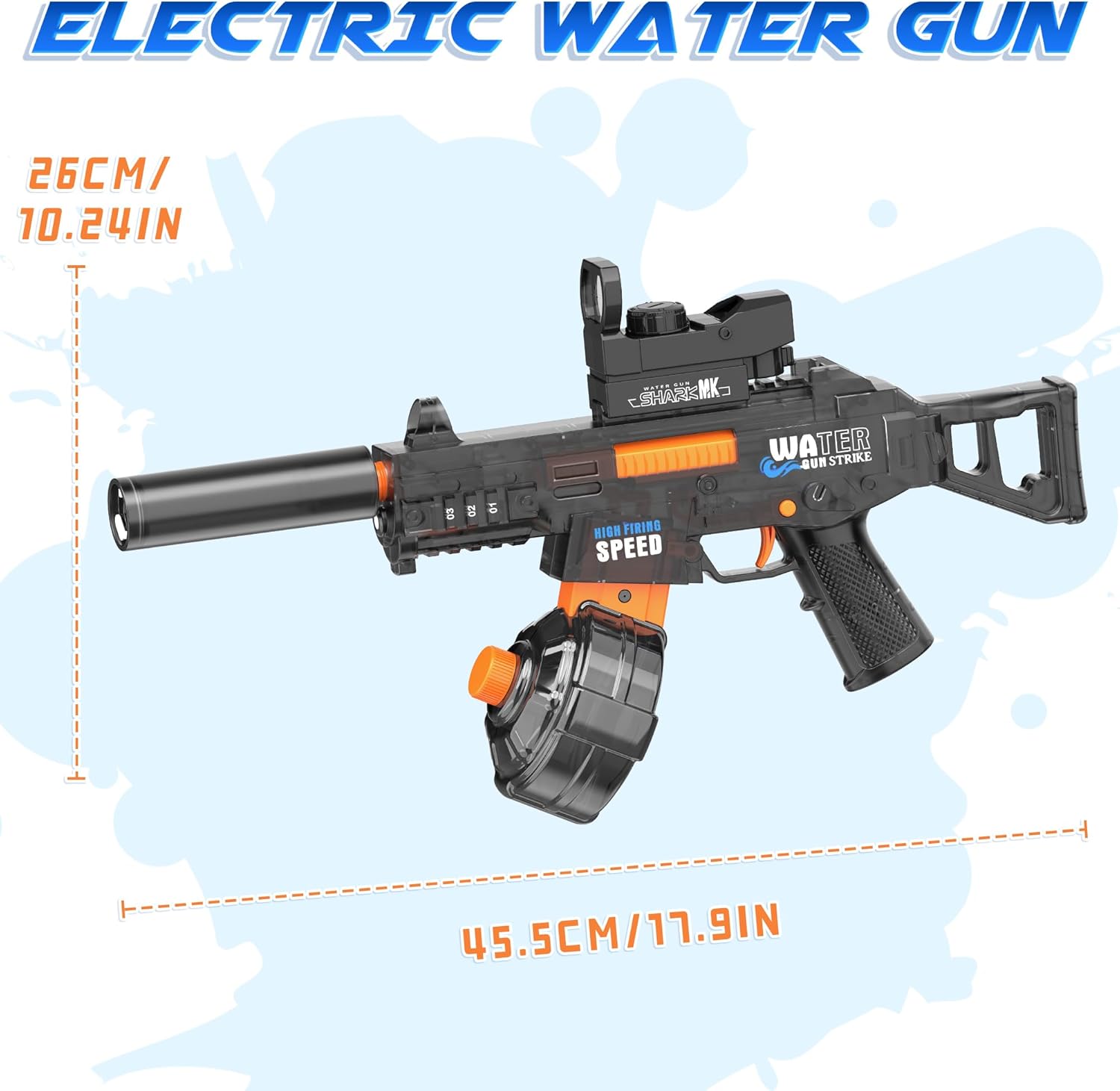 40-Minute Battery Life & Steady Fire: Powered by a 1200mAh rechargeable battery, enjoy 40 minutes of non-stop play—perfect for quick, action-packed battles. The 4-rounds/second firing rate balances speed and efficiency, ideal as a battery-powered water gun for all ages during summer adventures