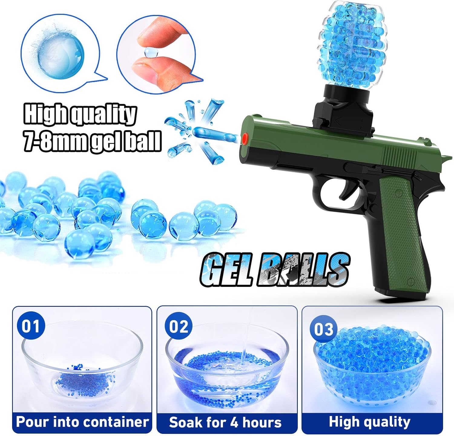 Gel Ball Blaster Gun: The ball blaster gun with exquisite exterior is designed for outdoor shooting activity that is full of fighting spirit! Its fast rate of fire and long-range shooting can give you a very real and interesting