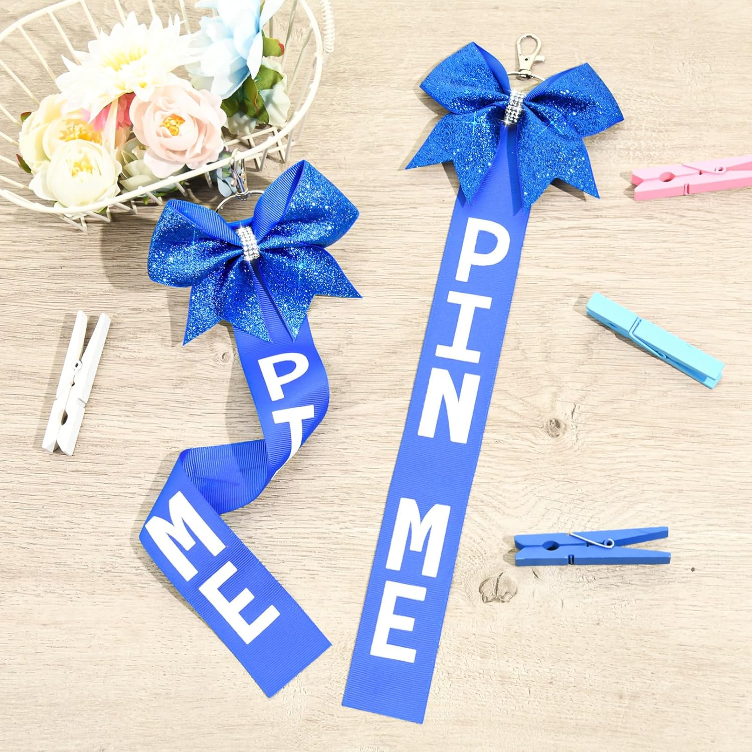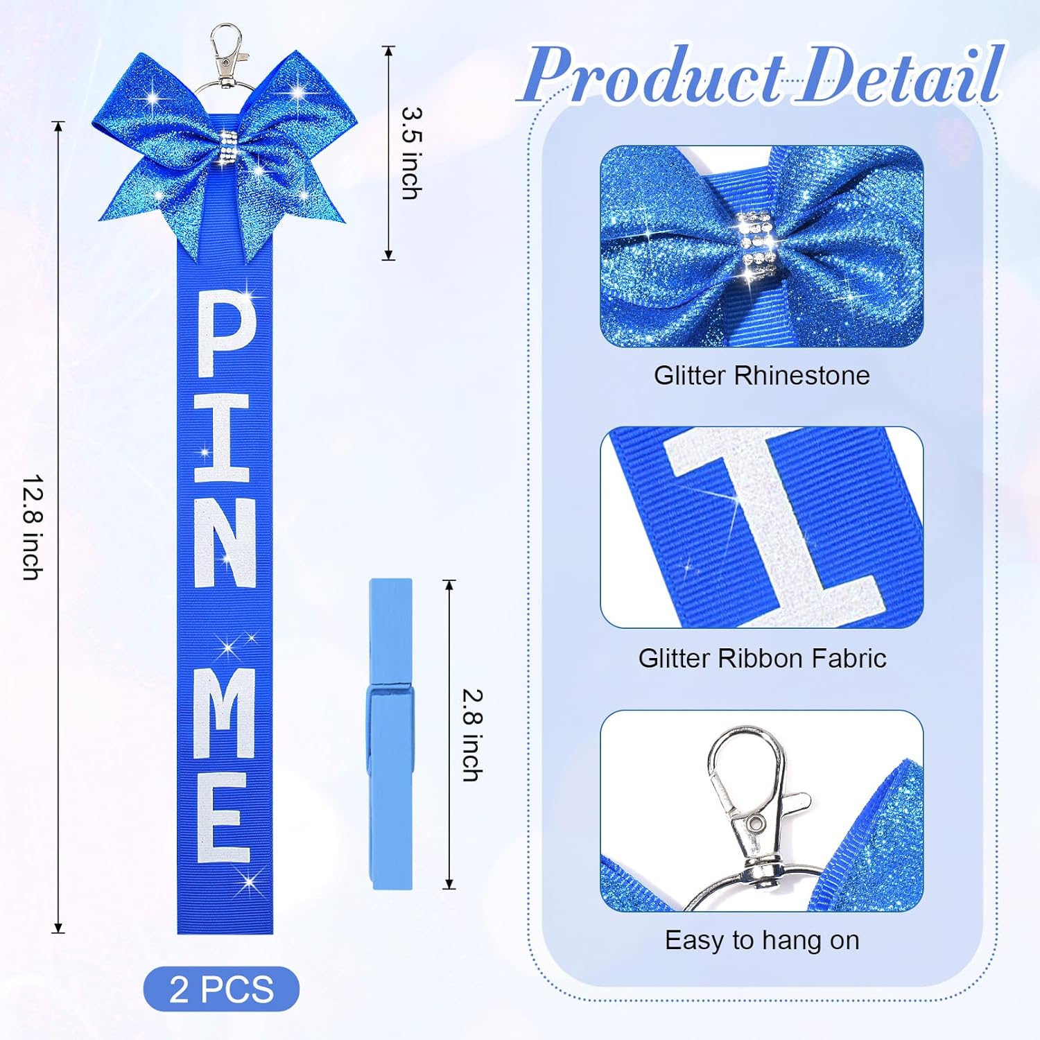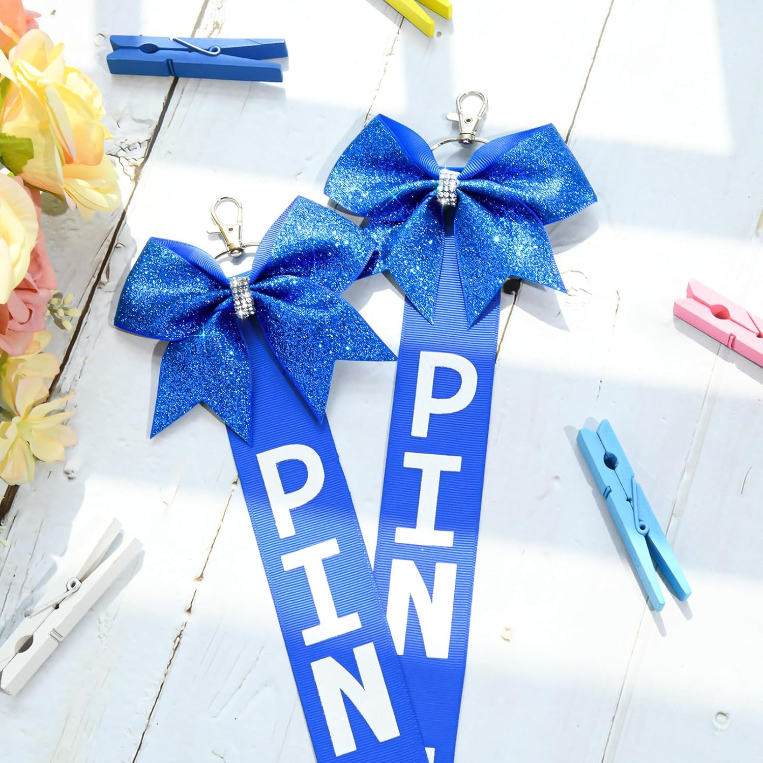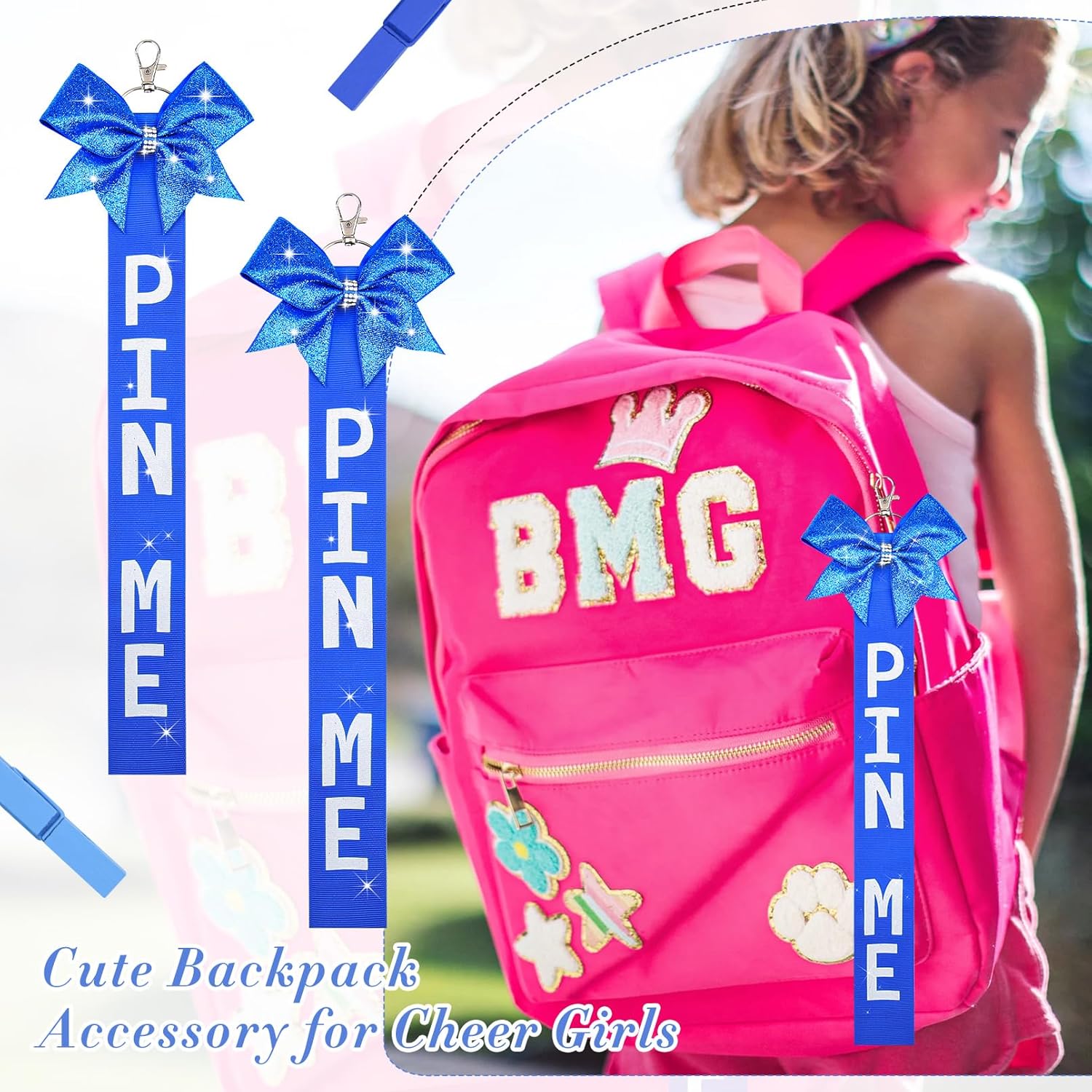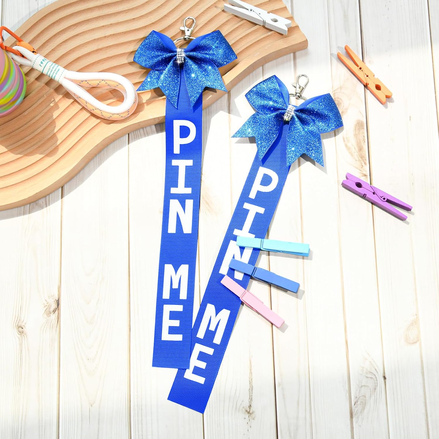 2 PCS Pin Me Ribbon Cheer Bag 10 PCS Cheer Pins Bow Cheerleading Gifts Clips(Blue/White)