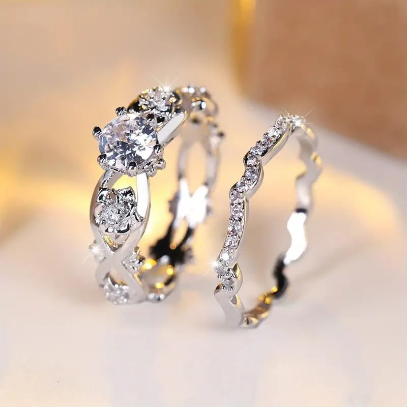 Luxury 2Pcs Set of Rings for Female Double Stacked Fashion Jewelry Wedding Accessories
