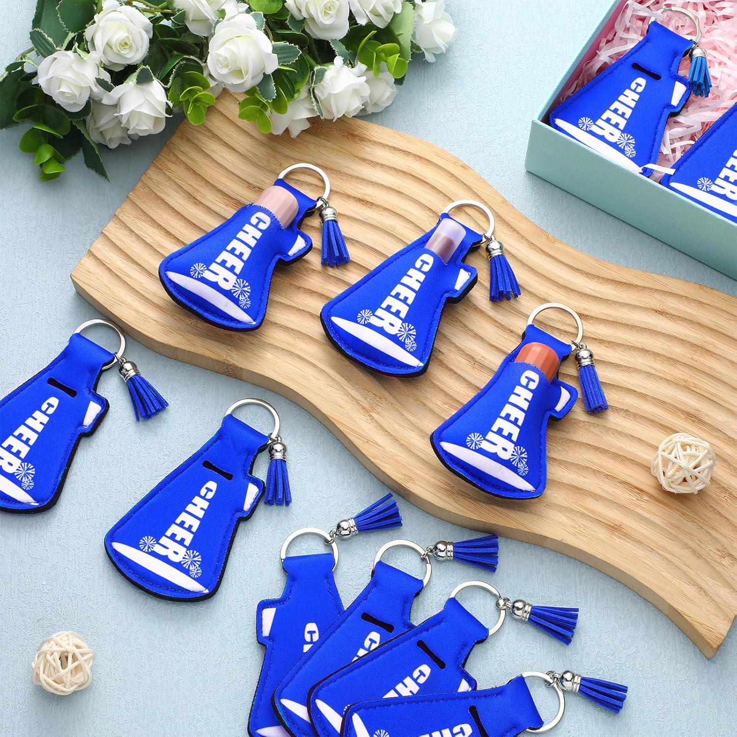 Comment on "20 Pcs Cheerleading Gifts Bulk Natural Lip Balm Holder with Tassel Hangable Keychain Charms Set Cheer Team Gifts for Cheer Teen Sports Party Supplies(Green)(Blue)"