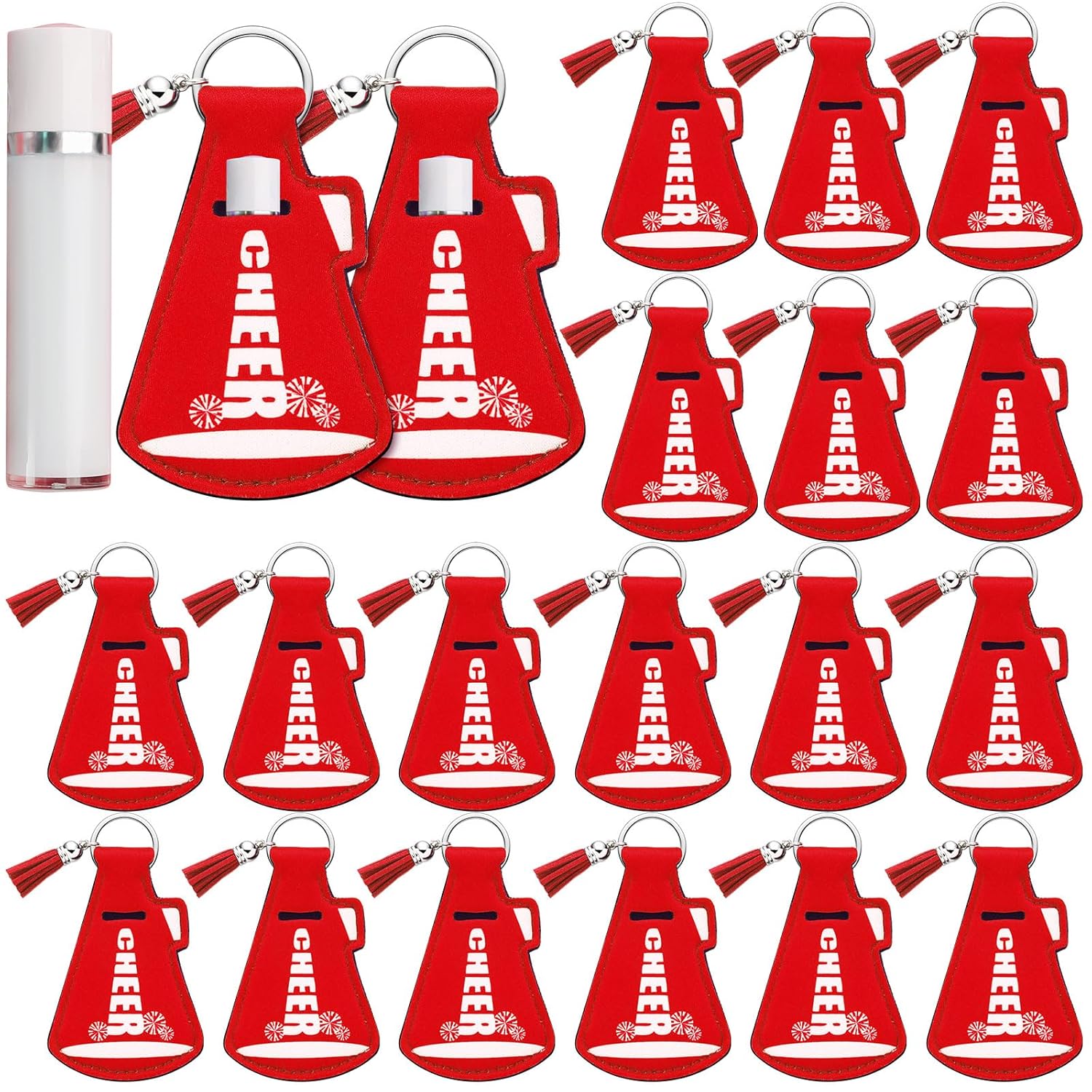 Packaging Includes: fall in love with this playful cheerleading gift set, featuring 20 stylish and cheer lip balm keychain holders; Each holder is not only fashionable but also designed with a cheerleading motif, making it the ideal set for any cheer enthusiast