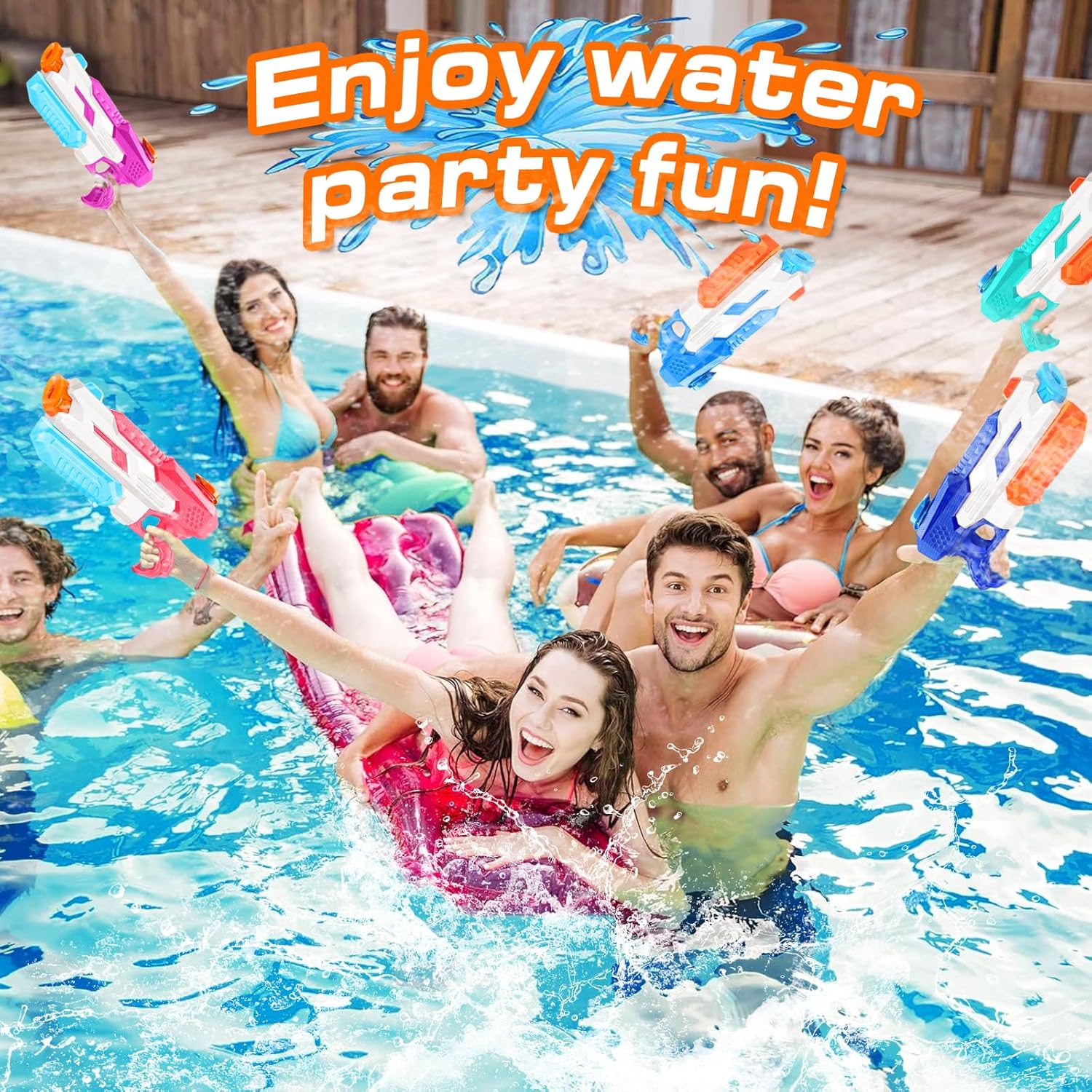 Design for Group - This soaker water guns pack includes 4 colorful toys to provide hours of fun game play for a group of kids teens or adults. No matter where your opponents are, you can easily shoot them within the range. Fun for all ages, get drenched in endless fun and create epic memories with our powerful water guns set to make a splash at your party.