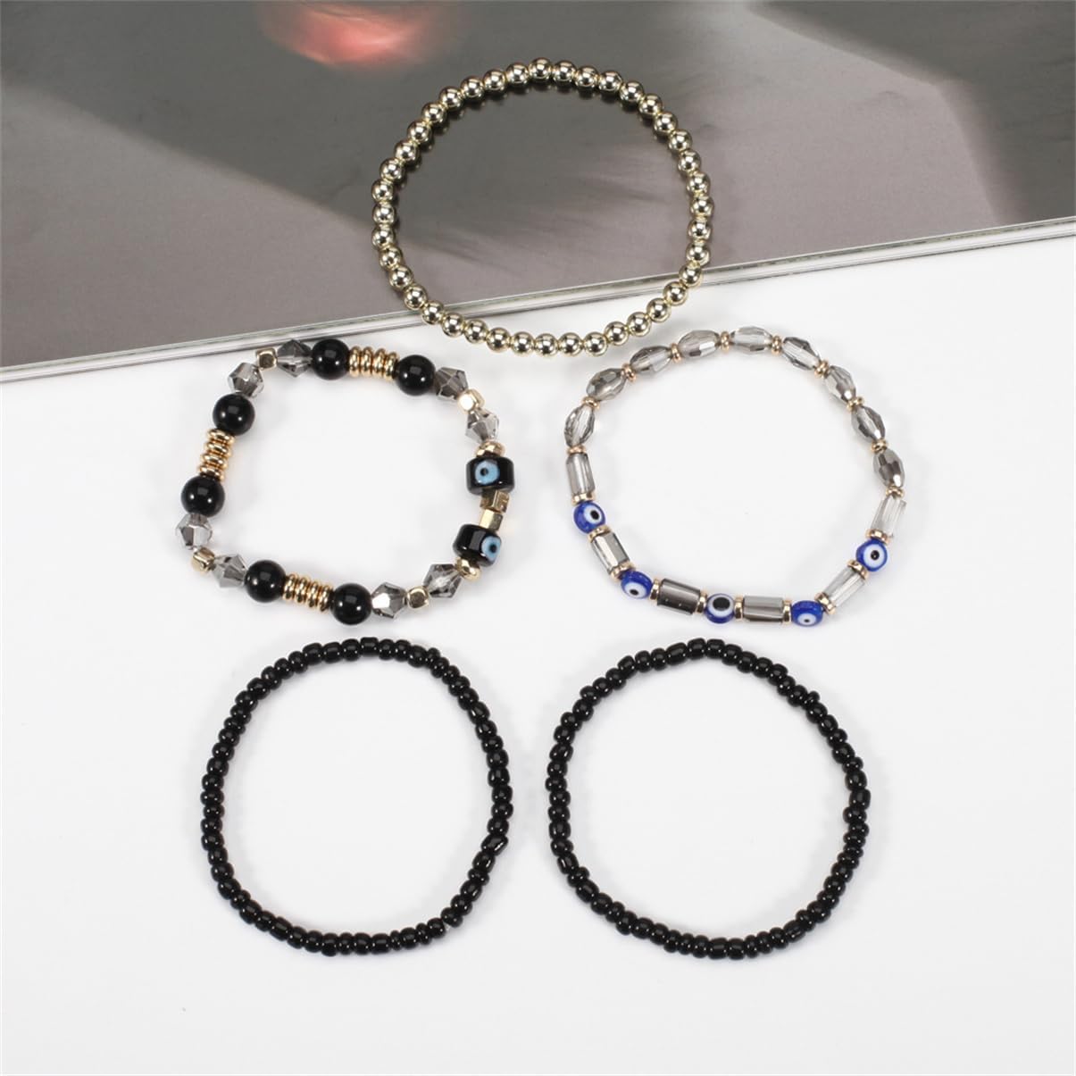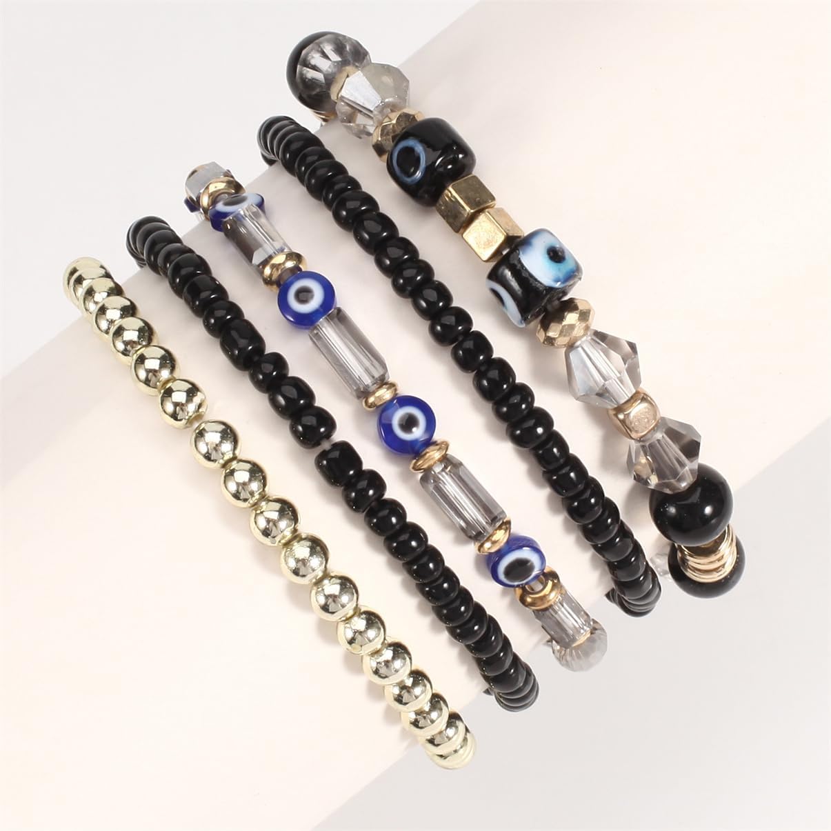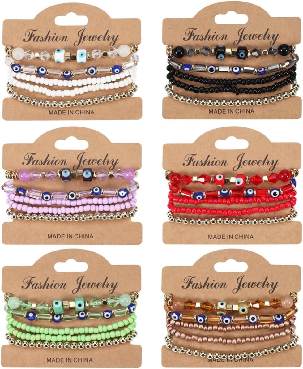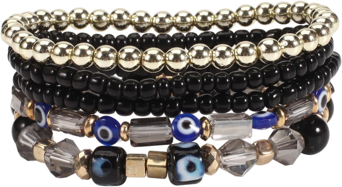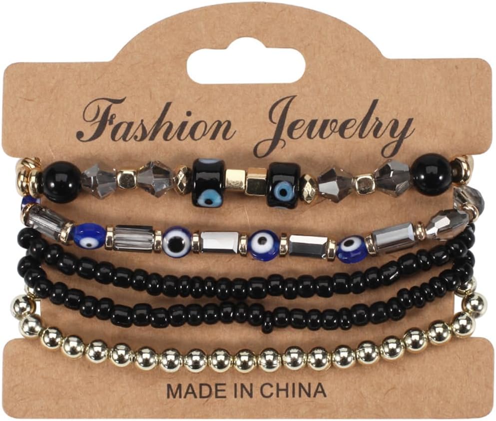 Comment on "5Pcs Bohemian Stackable Beaded Bracelets Set for Women,Multilayer Evil Eye Bracelets,Boho Layered Strand Bead Bracelets, Handmade Crystal Lucky Protection Stretch Bracelets for Women(Black)"