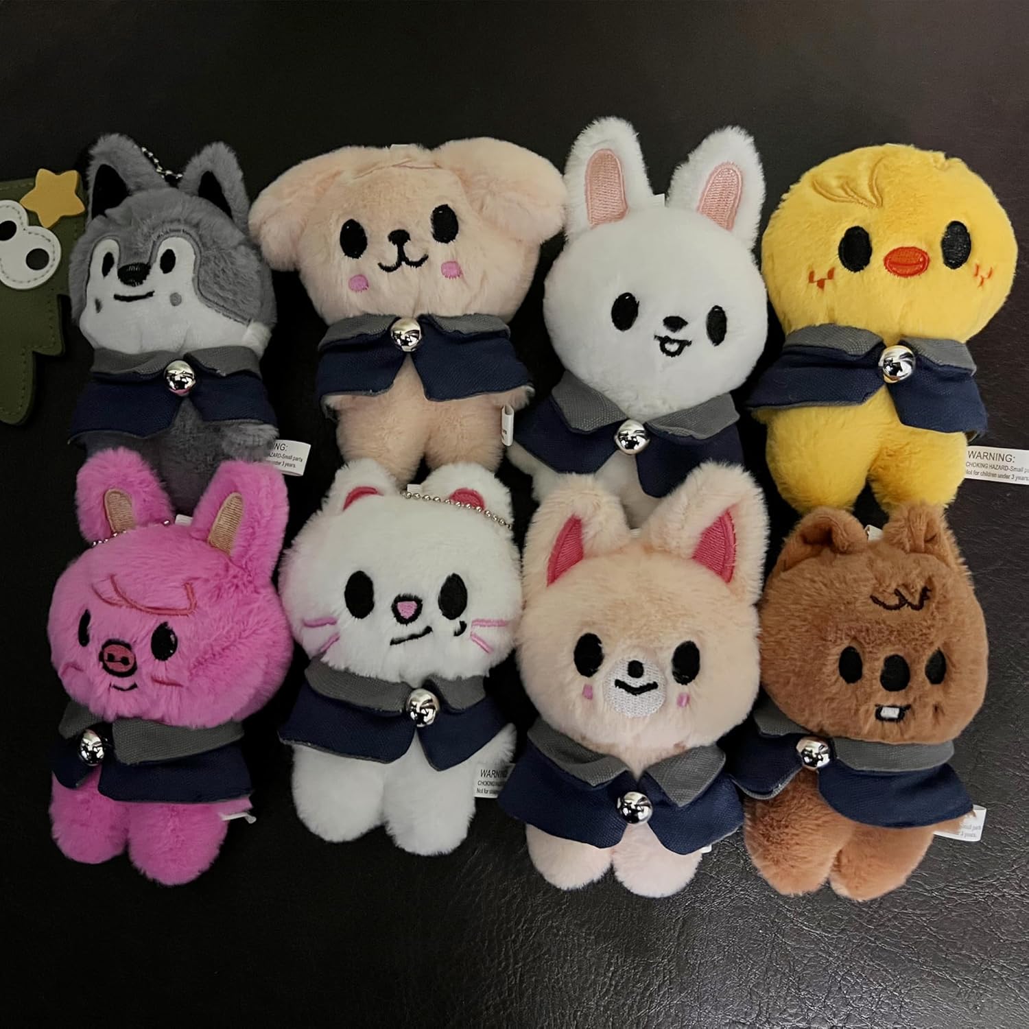 Packing List: The set includes 8 Pcs cute Stray Kids Keychains. 3.8 Inches soft and huggable plush doll inspired by the K-pop group.Including Leebit, Wolfchan, Dwaekki, Hanquokka, Jiniret, Bbokari, PuppyM, and Foxi.ny. Let you have a real nice experience in real life.