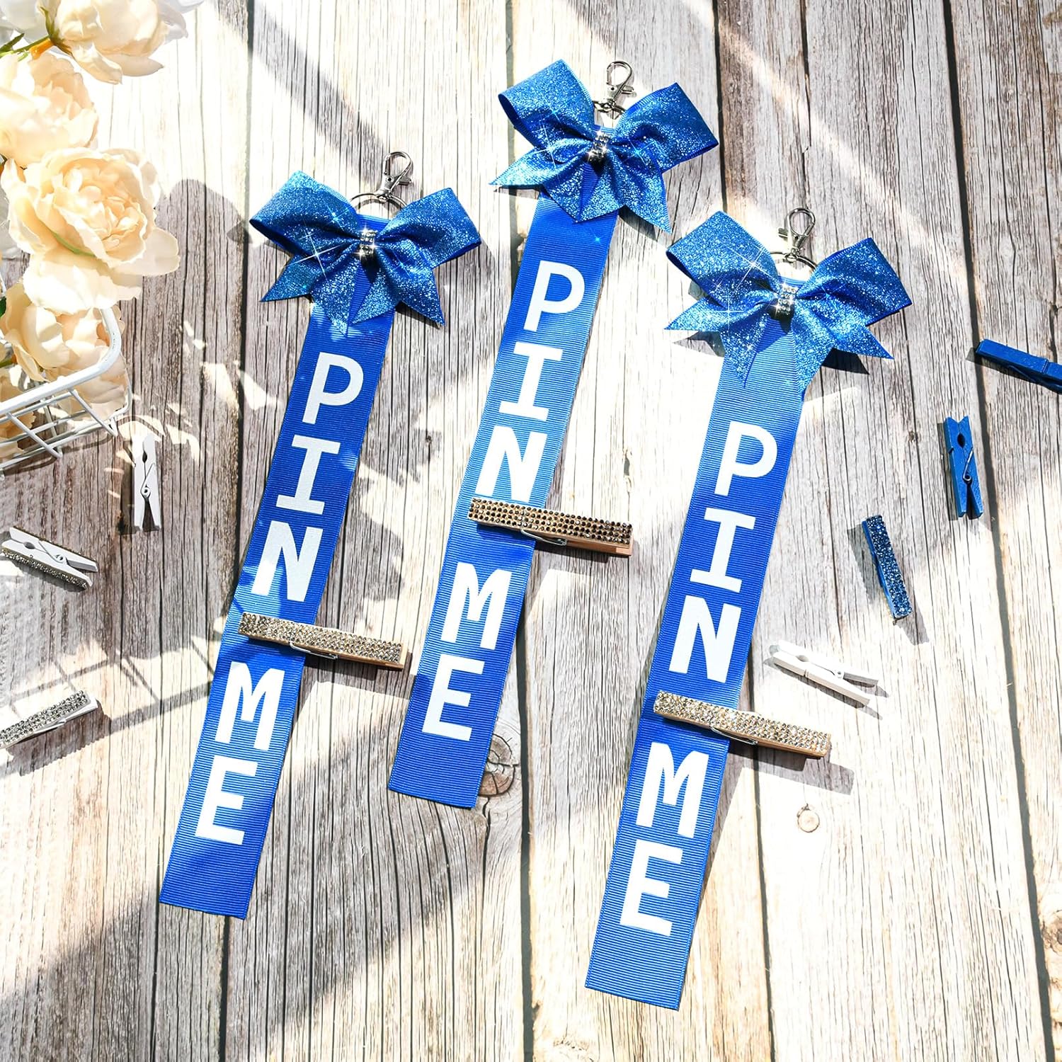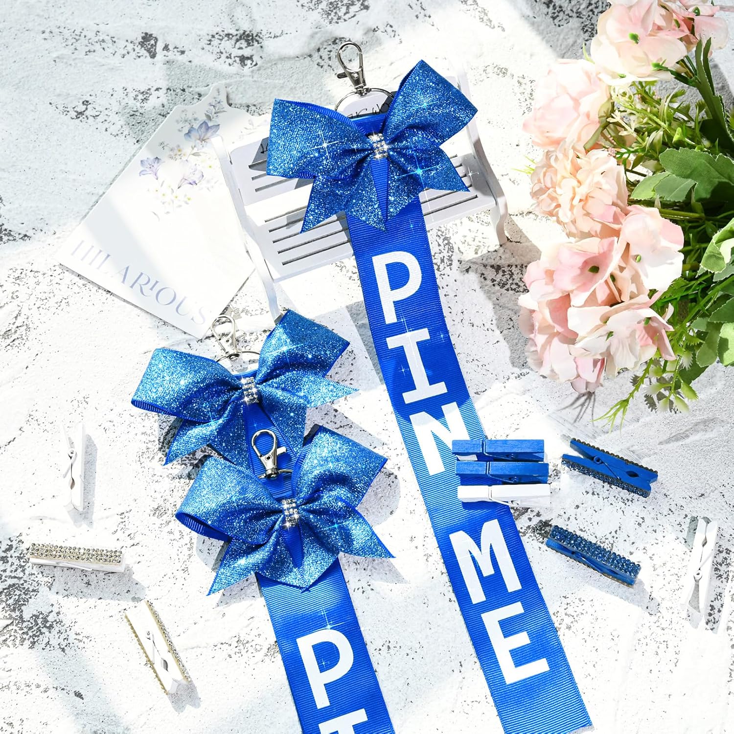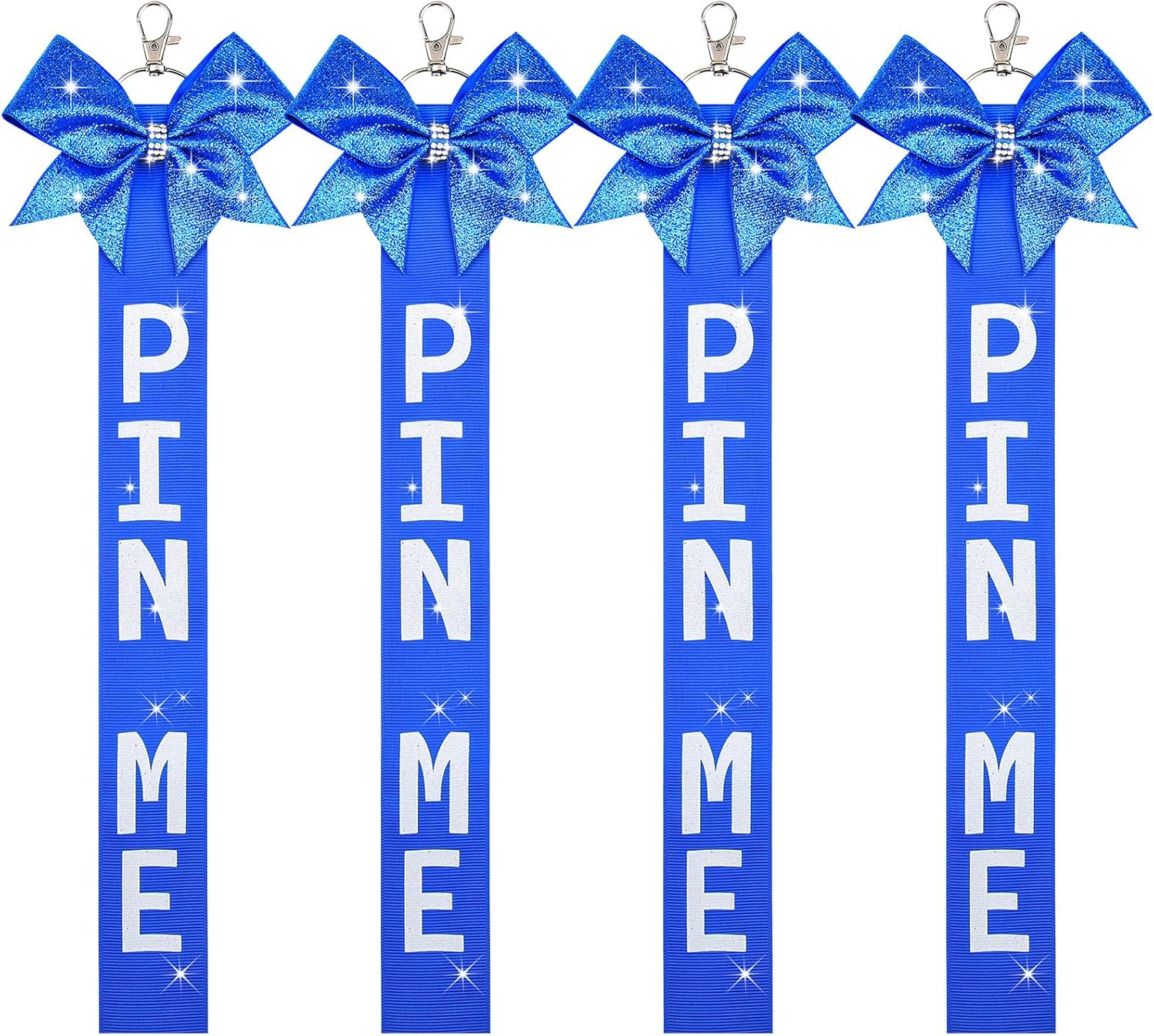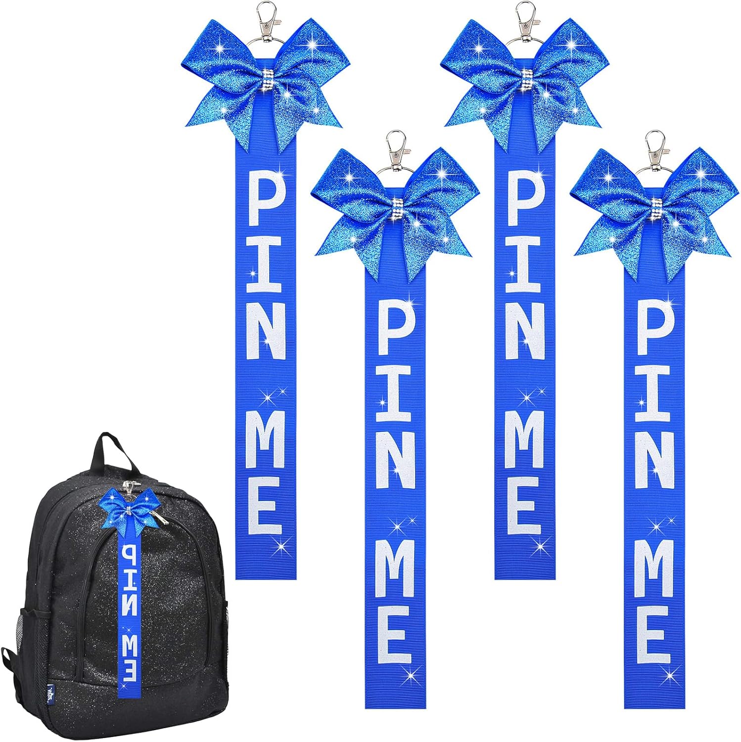 Aileam Pin Me Ribbon Cheer Bag Bow Keychain Cheerleading Pin Holder Cheer Accessories(4pcs-blue/White,4)