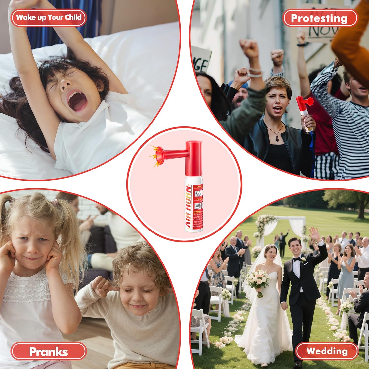 [Multifunctional Air Horn]: Versatile air horn is perfect for graduation celebrations, parties, sporting events and any other outdoor events where you need it, which is ideal alarm for boating, camping or hiking, also can be applied as bear proof or dog training