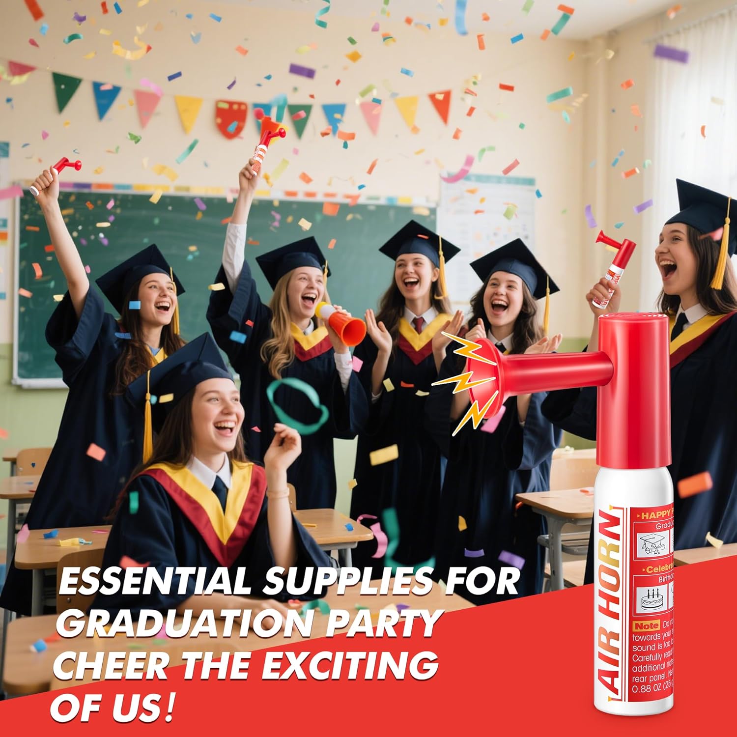 [Air Horn for Graduation ]: Our graduation air horn can emit an attention-grabbing loud sound, ensures you will be heard from within a mile. Made for sending loud signals while at graduation parties, birthday parties or self defense and personal safety