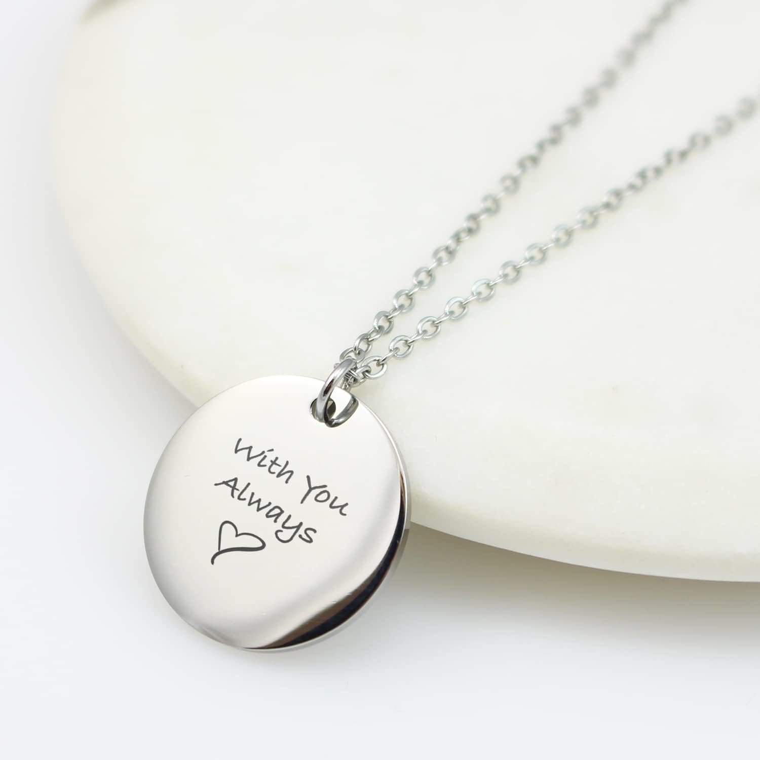 We offer custom engraving service for this pendant necklace, By clicking the 'Customize Now' button, enter some meaningful text, such as fingerprint, and name, and our designer team will engrave the words on the pendant, and bring you a unique personalized necklace.