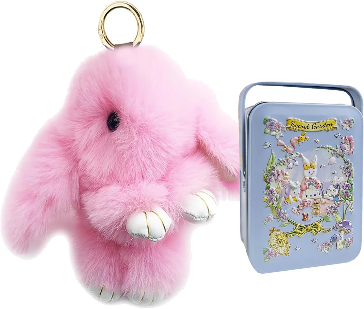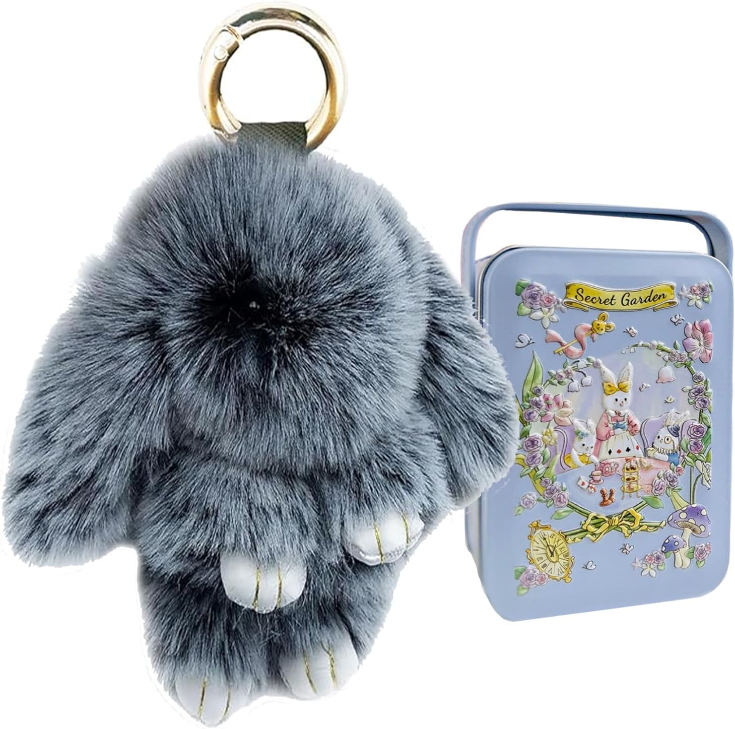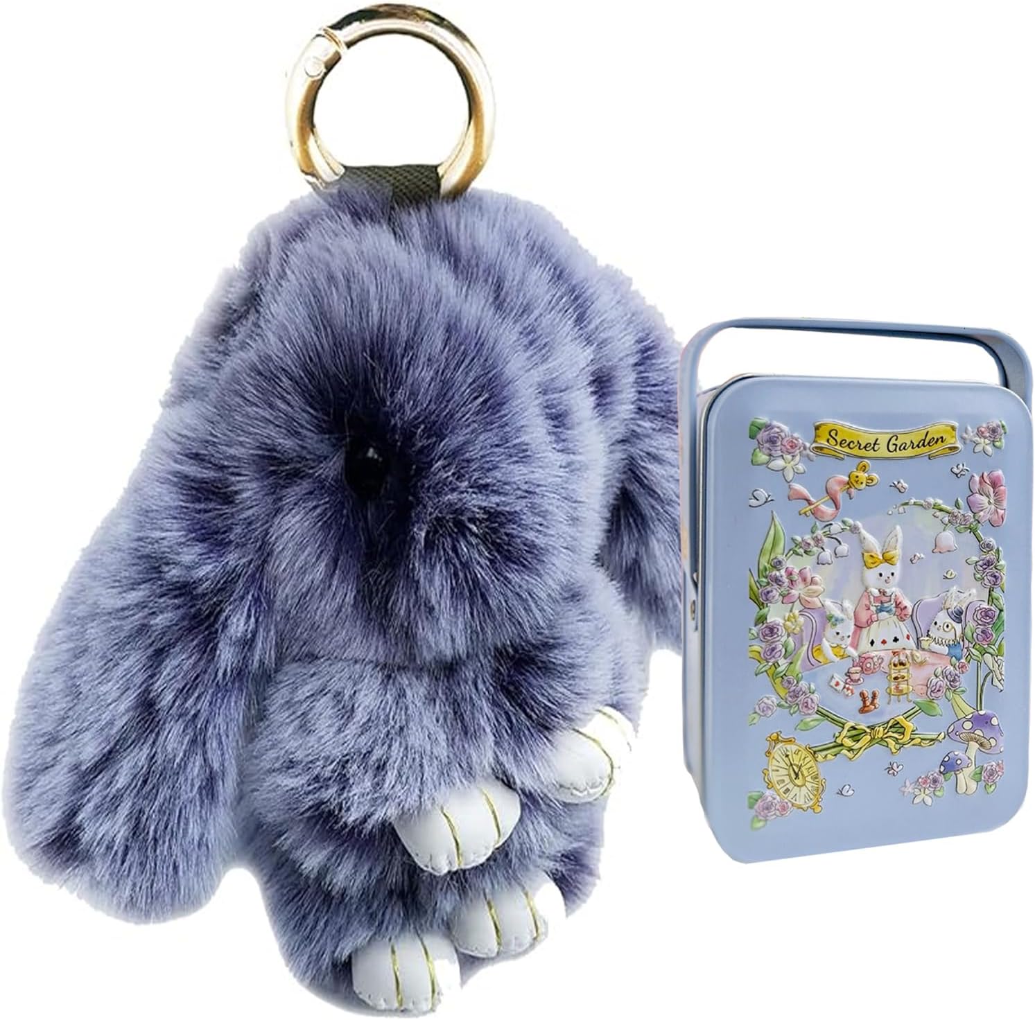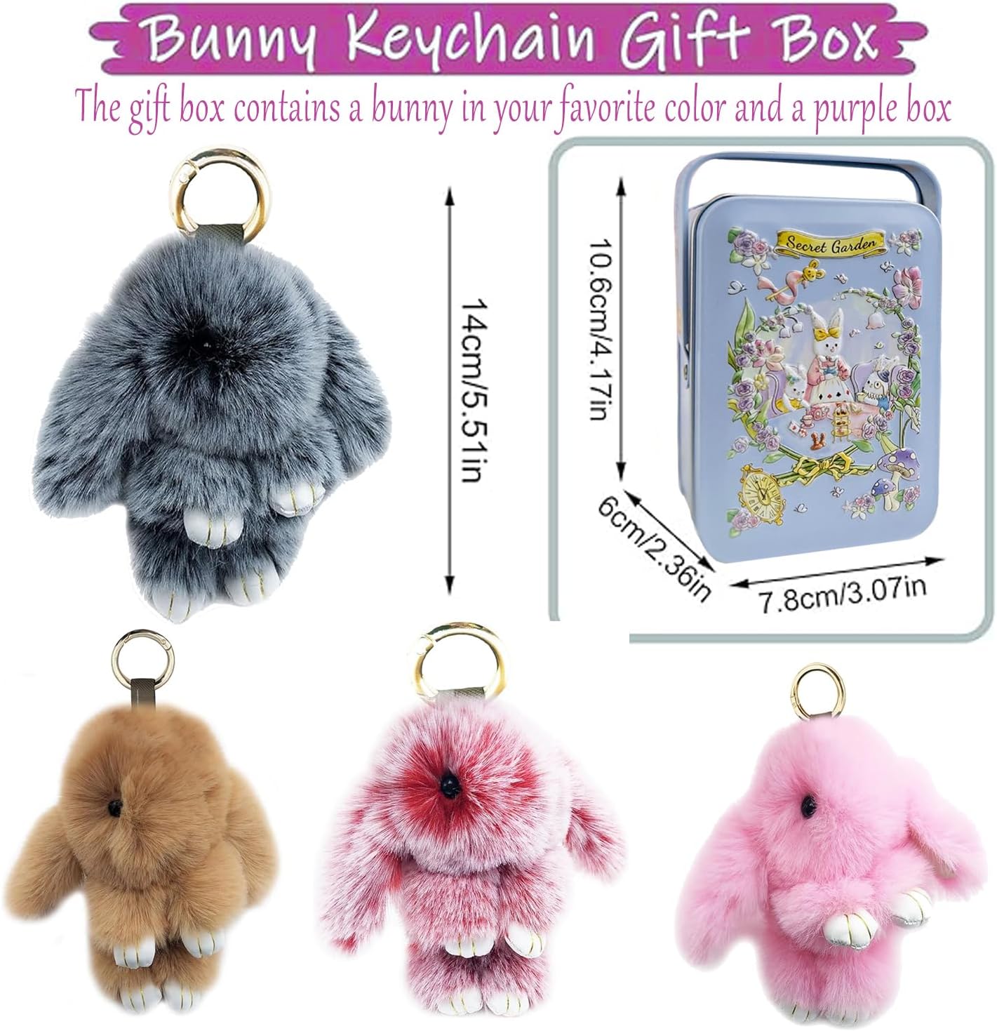 Bunny Plush Keychain, Soft Fluffy Keyring with Tin Box, PomPom Charms Gifts for Key & Bags