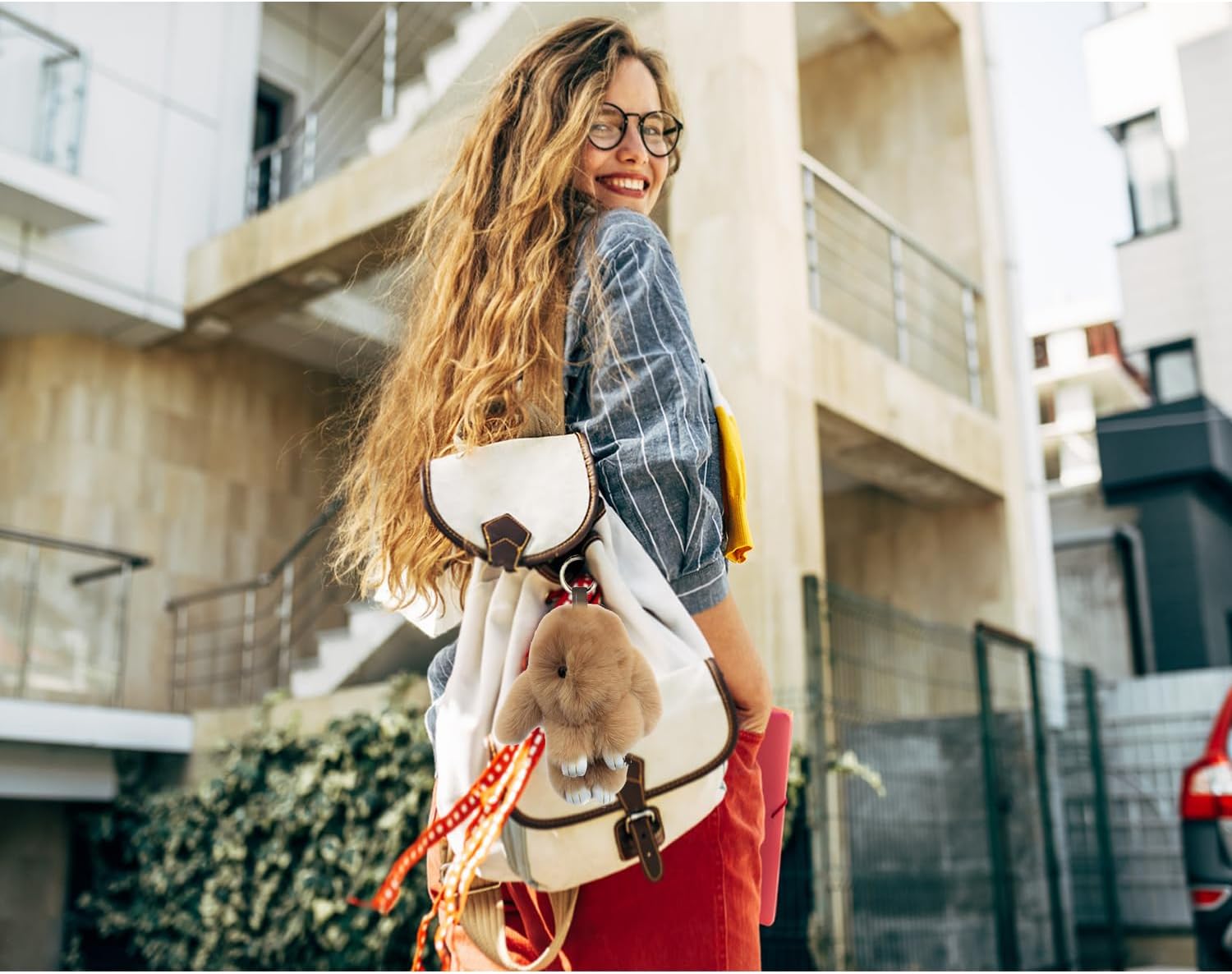 Perfect Portable Companion: A 15cm fluffy bunny keychain adds whimsy to keys, backpacks, or purses.