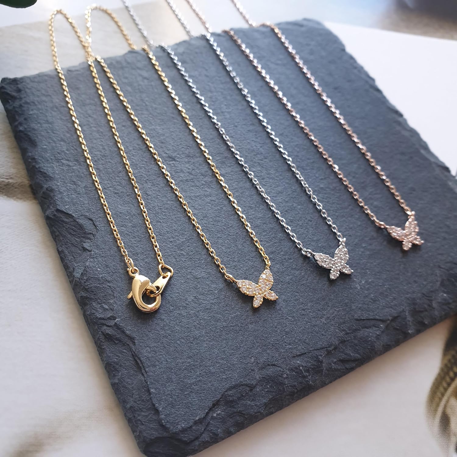 Comment on "Butterfly Cubic Zirconia Tiny CZ Pendant 18K Gold Dipped 24K White Gold Dipped Tiny Crystals Butterfly Necklace for Women (Silver, Two Butterfly)(Gold,Tiny CZ All)"