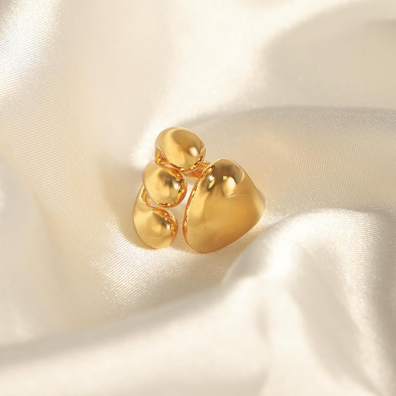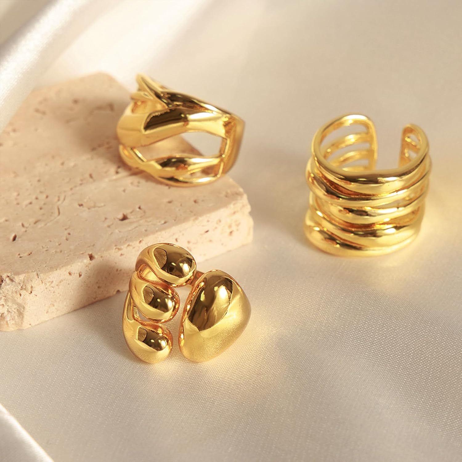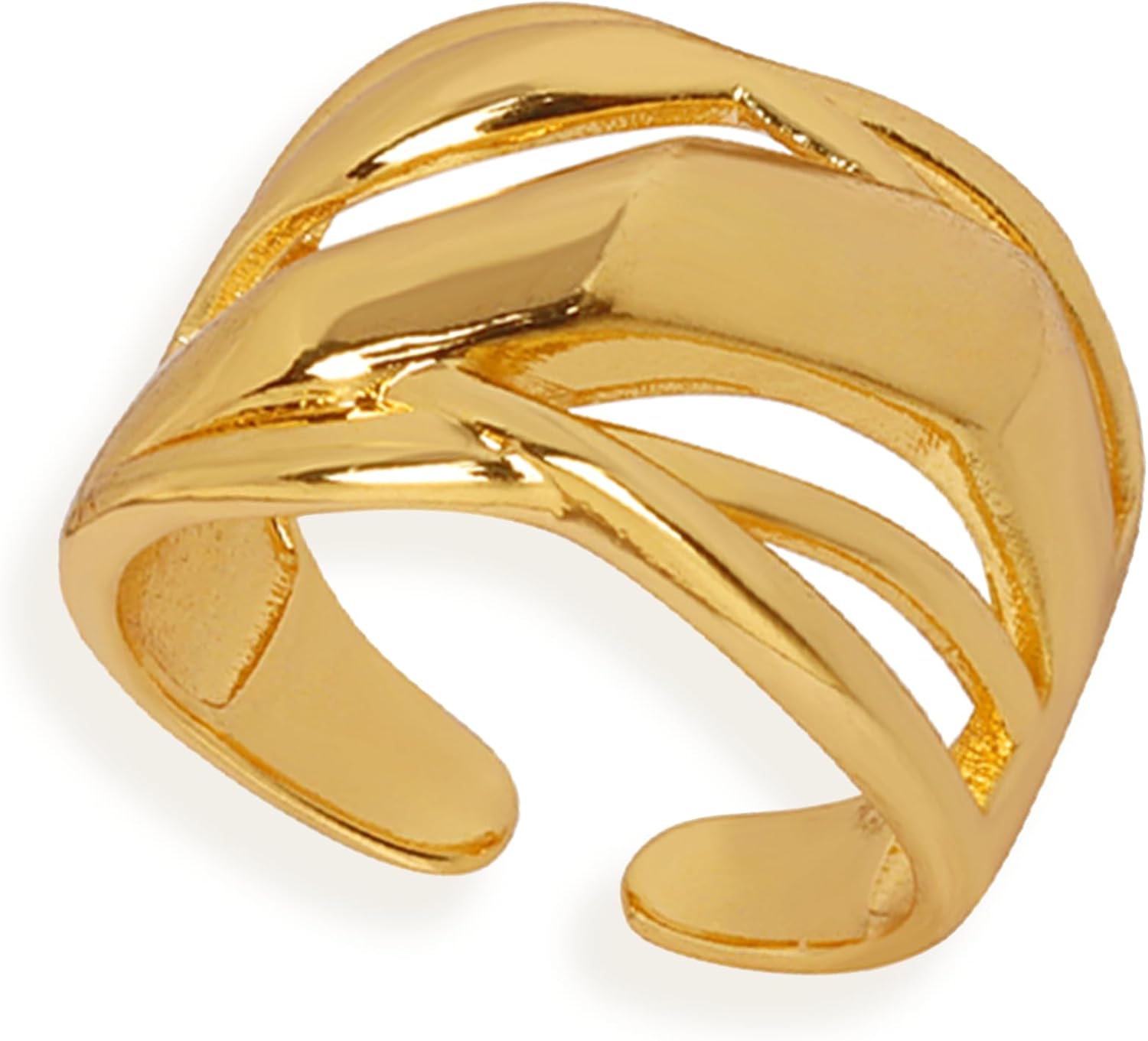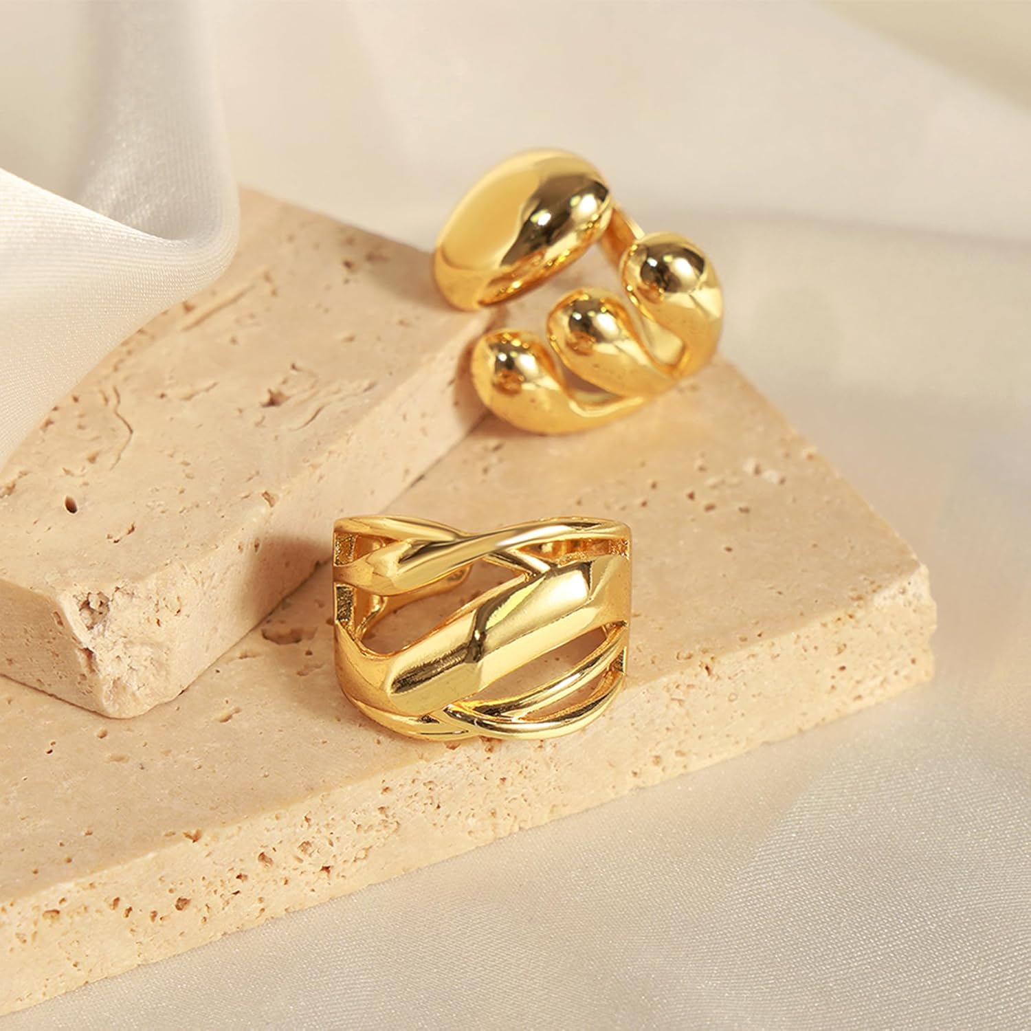 Elegant gold statement stacking ring, around U.S. ring size No.9, open ring design, not adjustable, great for layering, a happy fashion go-to accessory for effortless style.