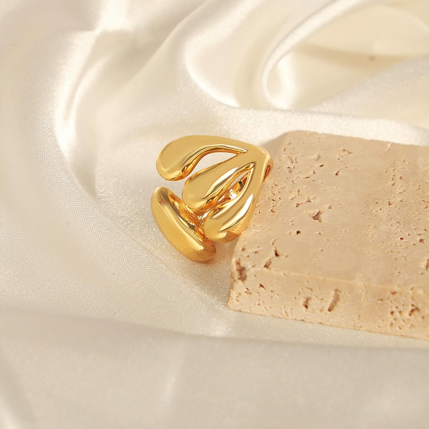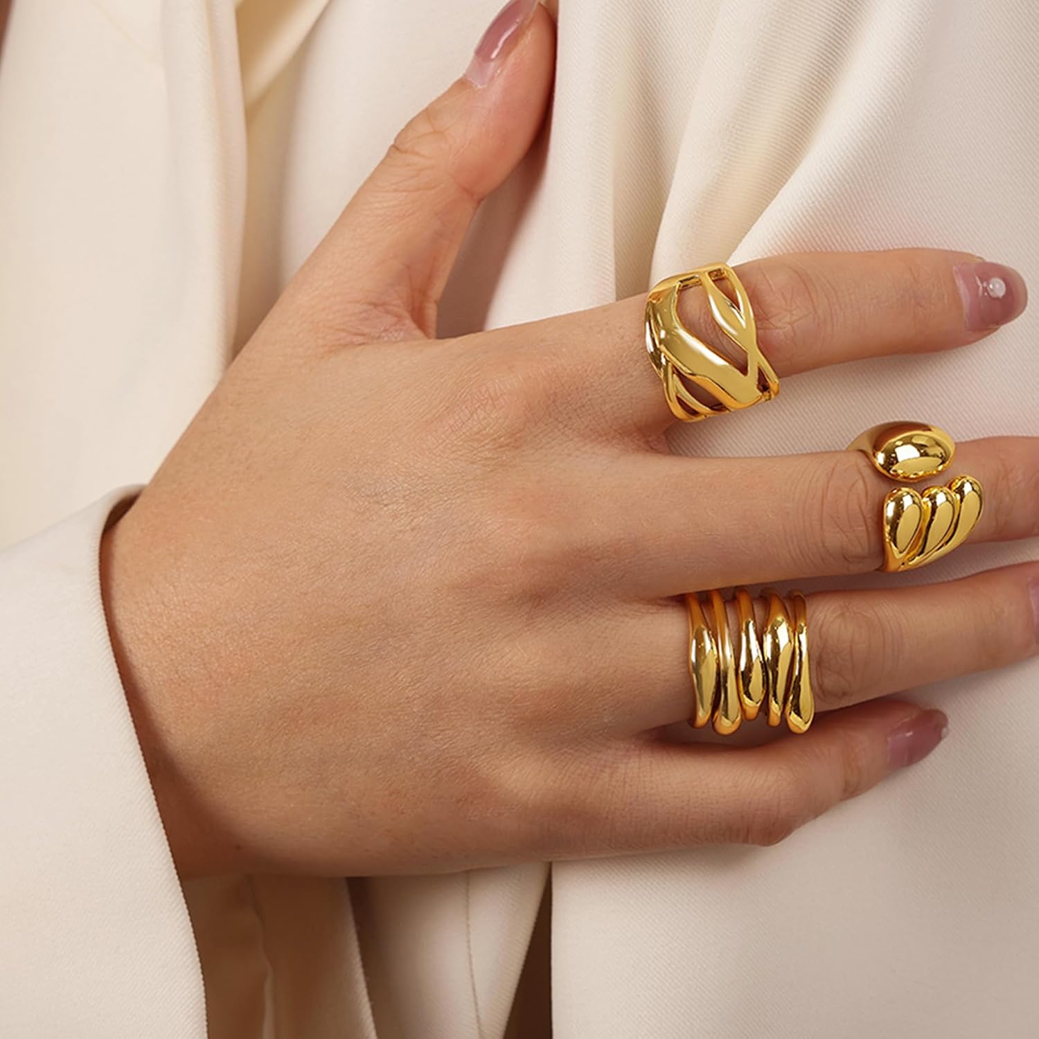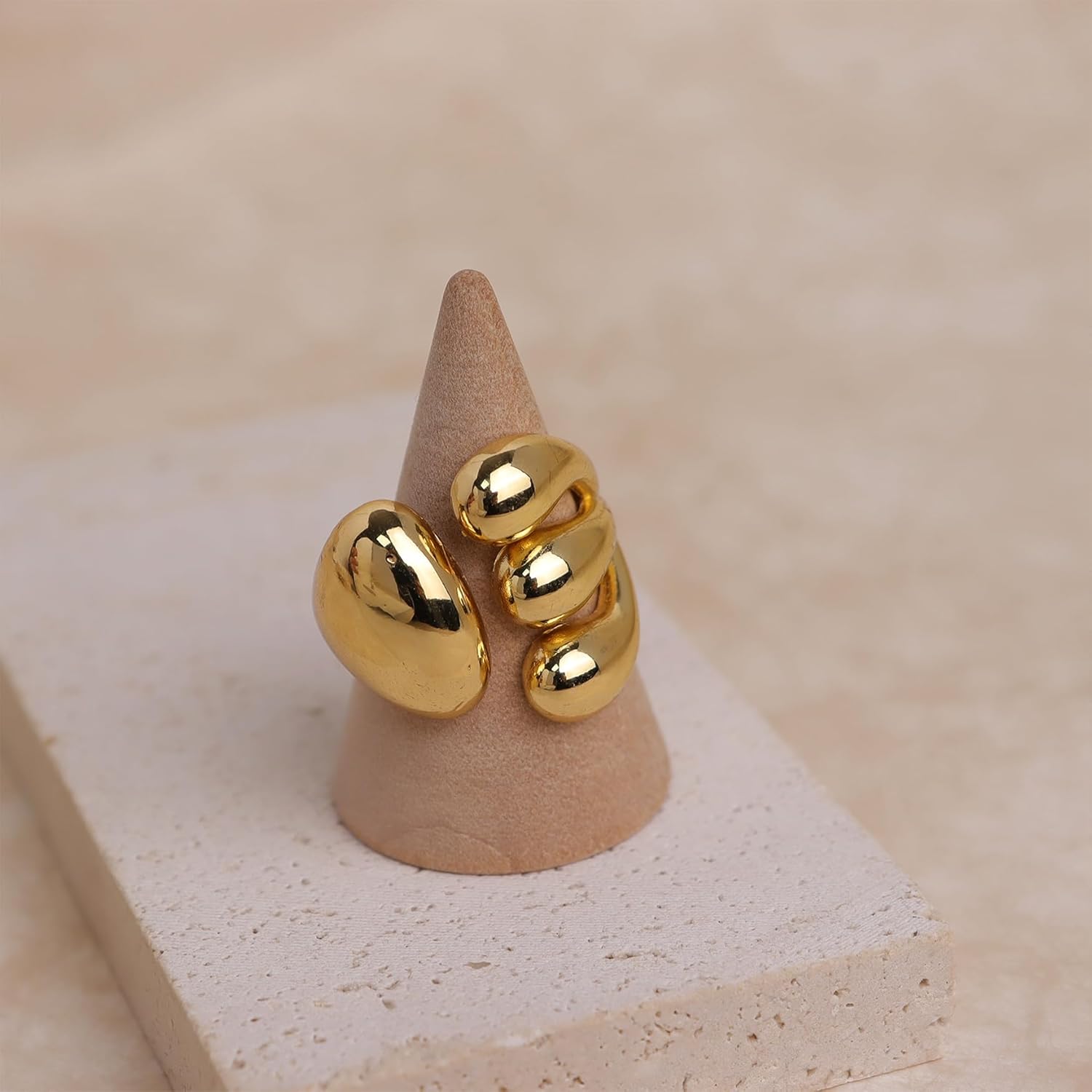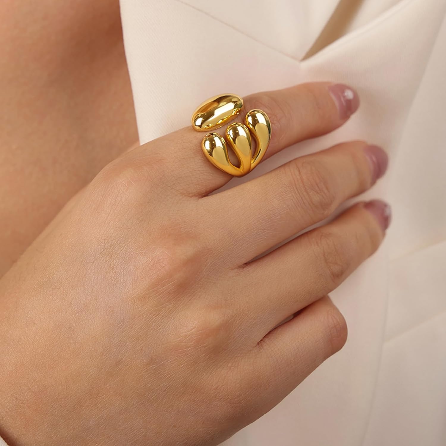 Elegant gold statement stacking ring, around U.S. ring size No.9, open ring design, not adjustable, great for layering, a happy fashion go-to accessory for effortless style.