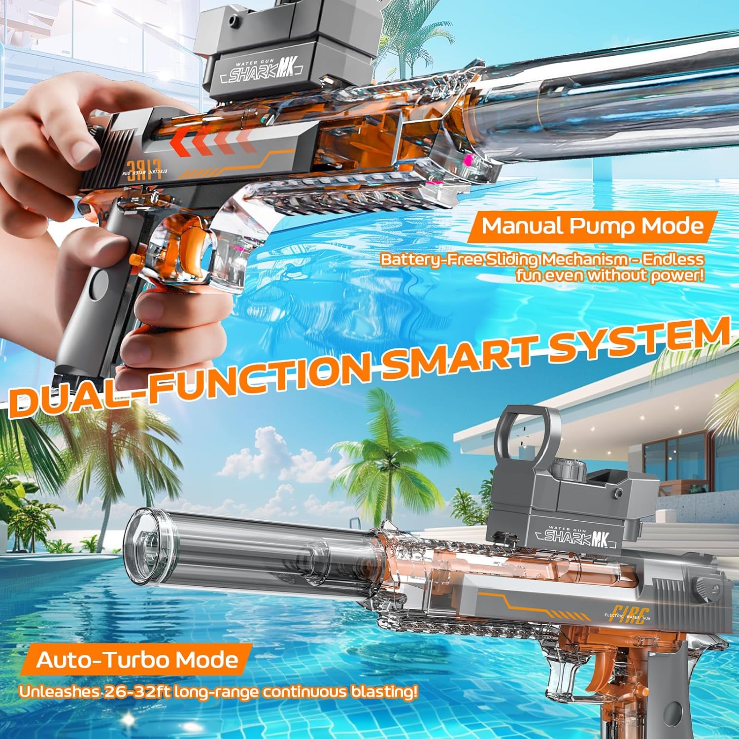 Automatic Water Filling - Simply place the water intake area into water and press the side button to fill it up automatically. Easy and convenient, it makes playtime more enjoyable!