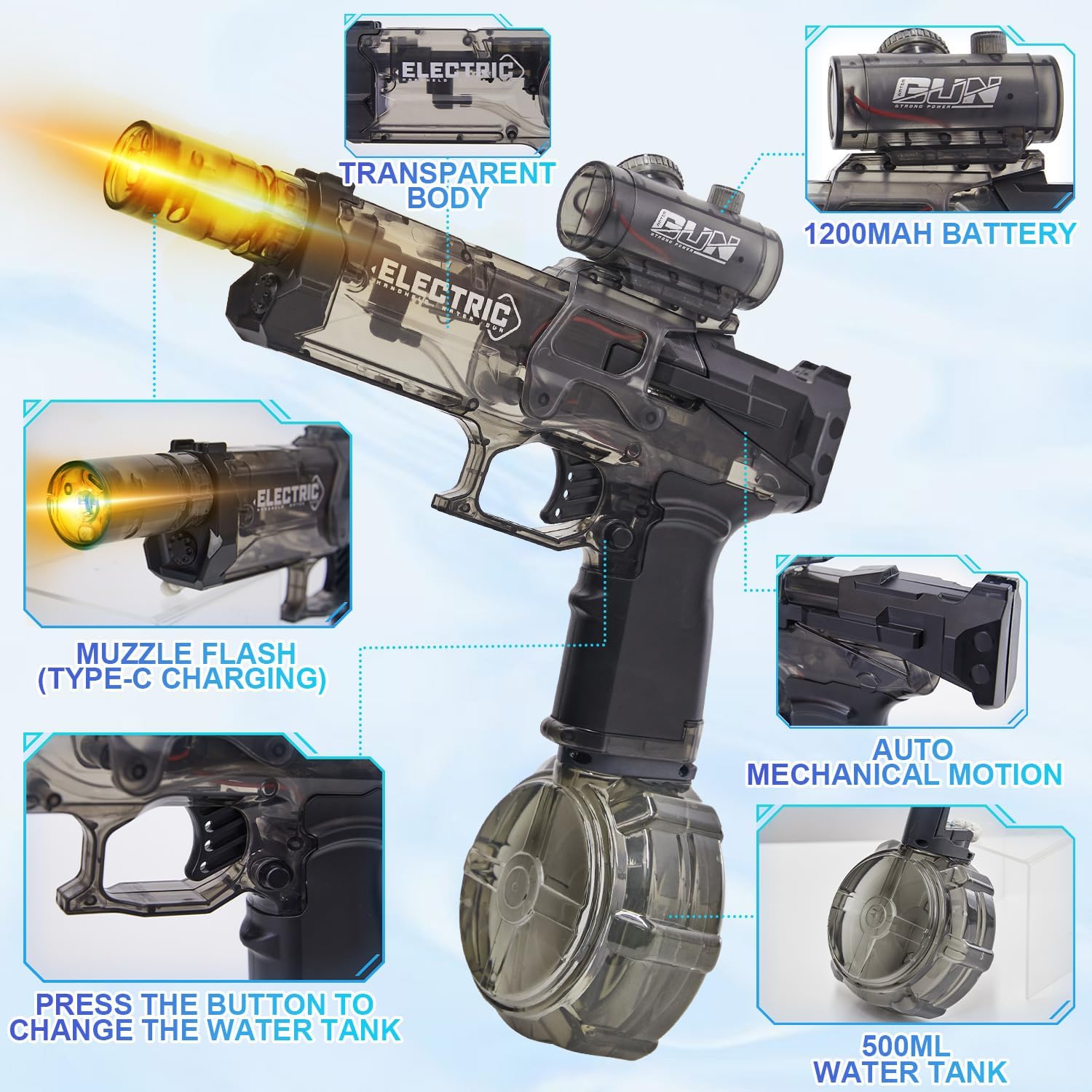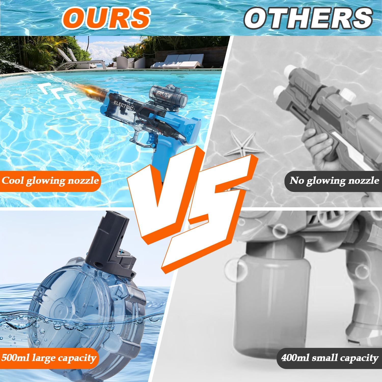 【500ML Large Capacity Water Tank】Play more, refill less. The 500ML large water tank lets you enjoy extended playtime without frequent refilling. Designed for convenience, the tank is easy to fill and ensures you’re always ready for the next round of fun.