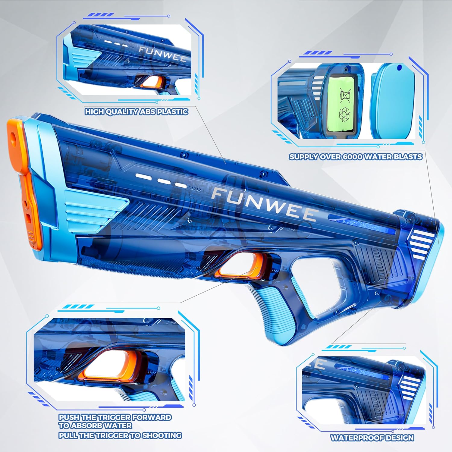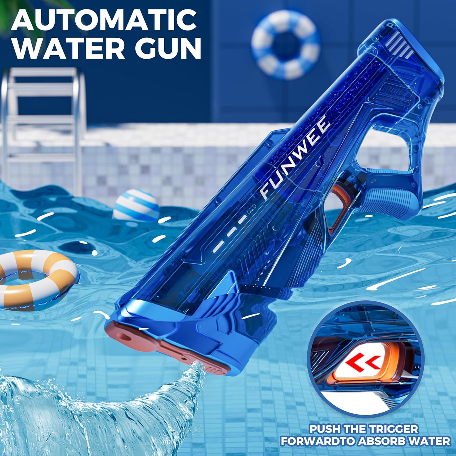 【Update Waterproof Design】The strong gift watergun updates the design to be waterproof to avoid causing damage the inner electronic components that you can have fun with family and friends in swimming pool party.