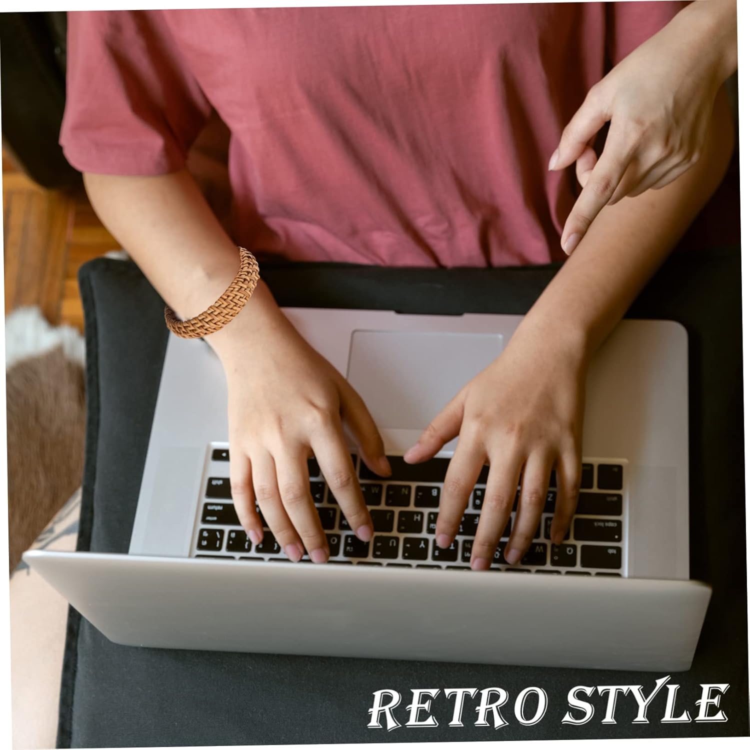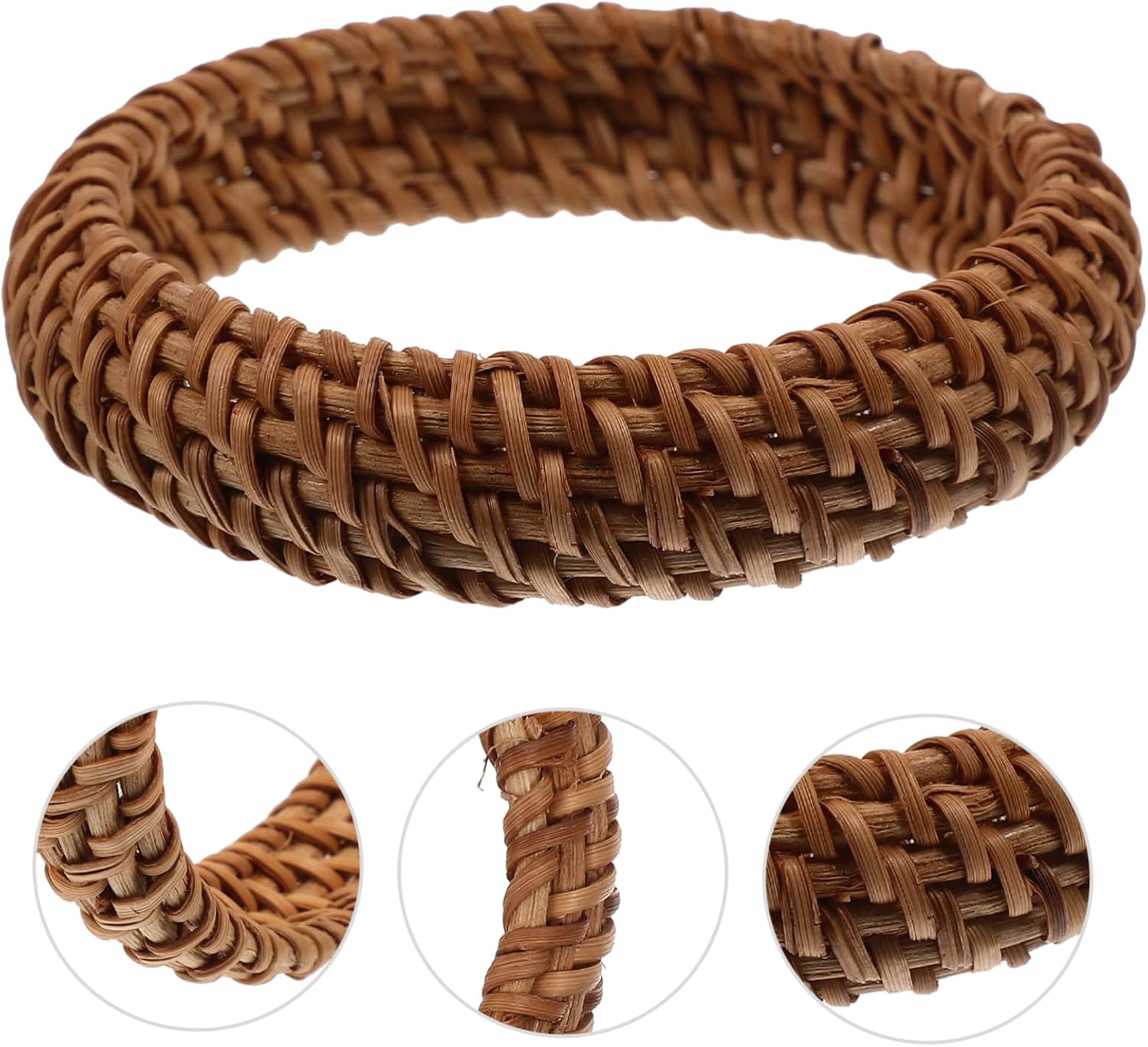 FRCOLOR Woven Rattan Chunky Bangle Bracelet for Women Ethnic Style Wrist Jewelry Chic Retro Accessory for Parties and Everyday Wear Unique Handmade Design