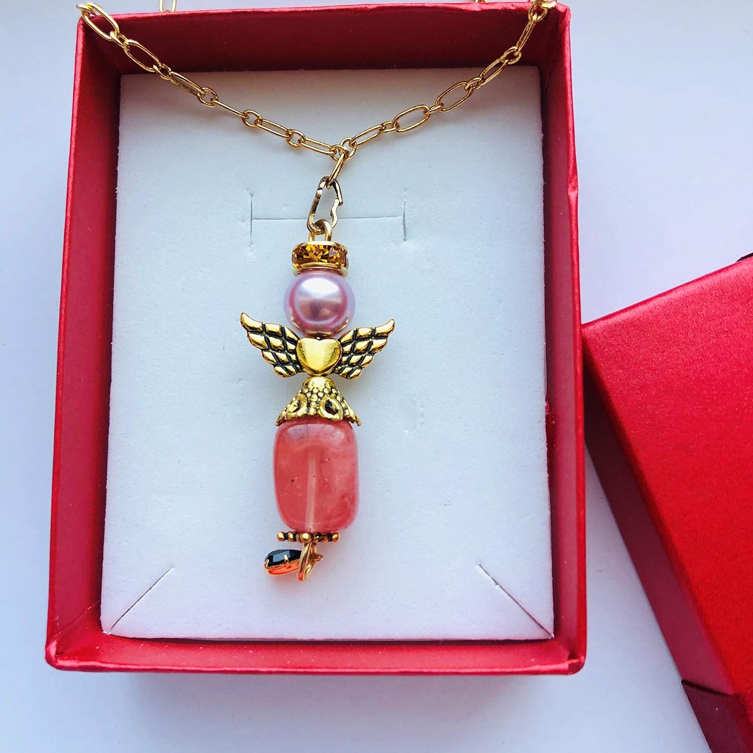 Comment on "Guardian Angel Watching over you Pendant Golden Wings Large Agate Rhinestone Necklace"