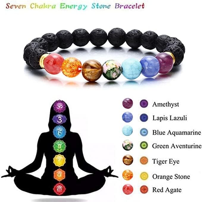 GIONO Black Lava Stone Howlite Oil Diffuser Chakra Reiki Beads Natural Gemstone Elastic Bracelet