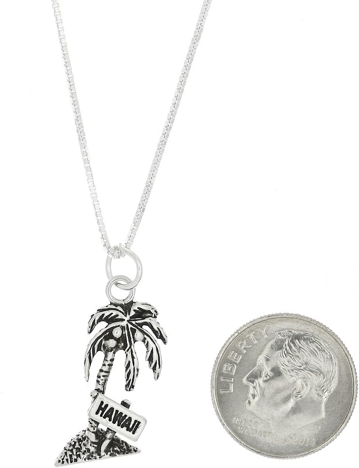 LGU Sterling Silver Oxidized Flat Hawaii Palm Tree Charm Necklace(16.0 Inches)